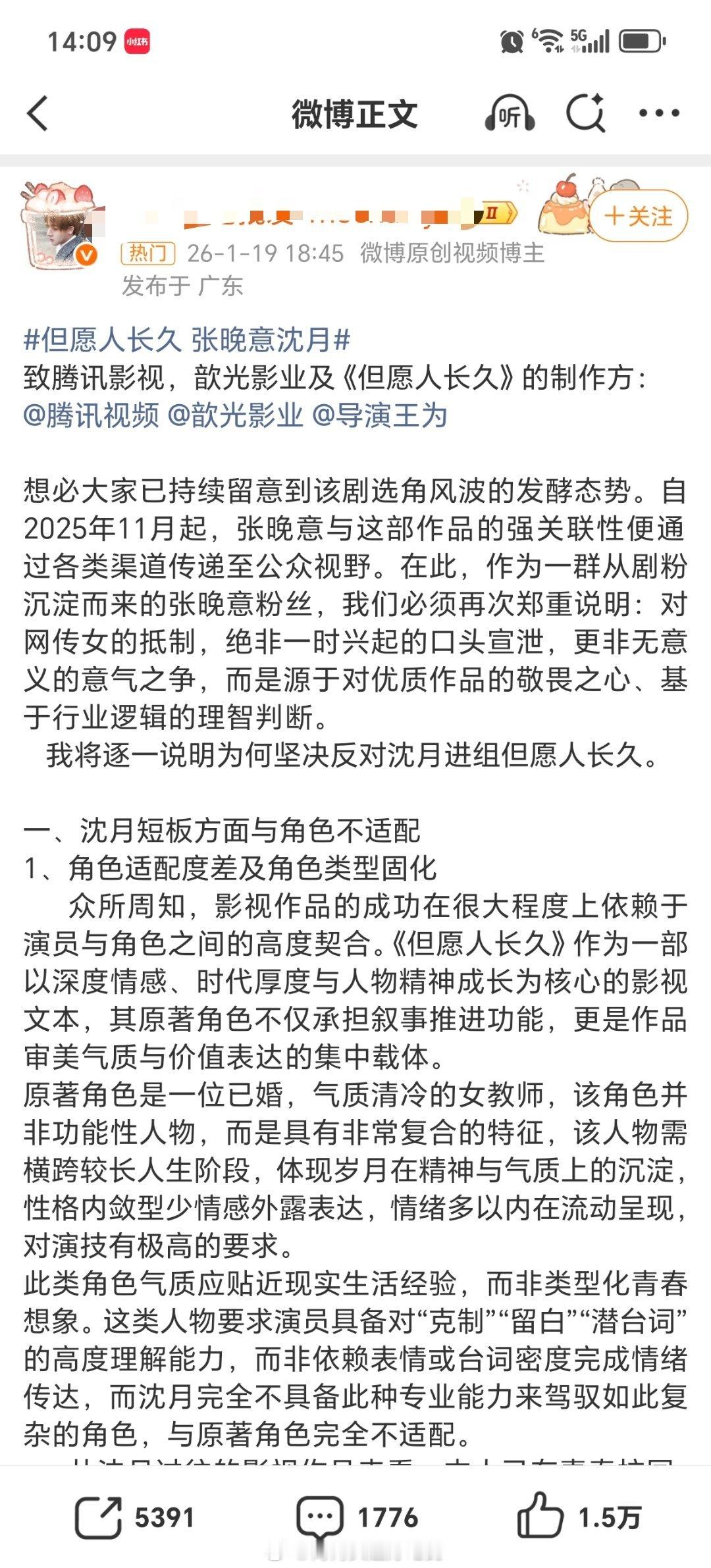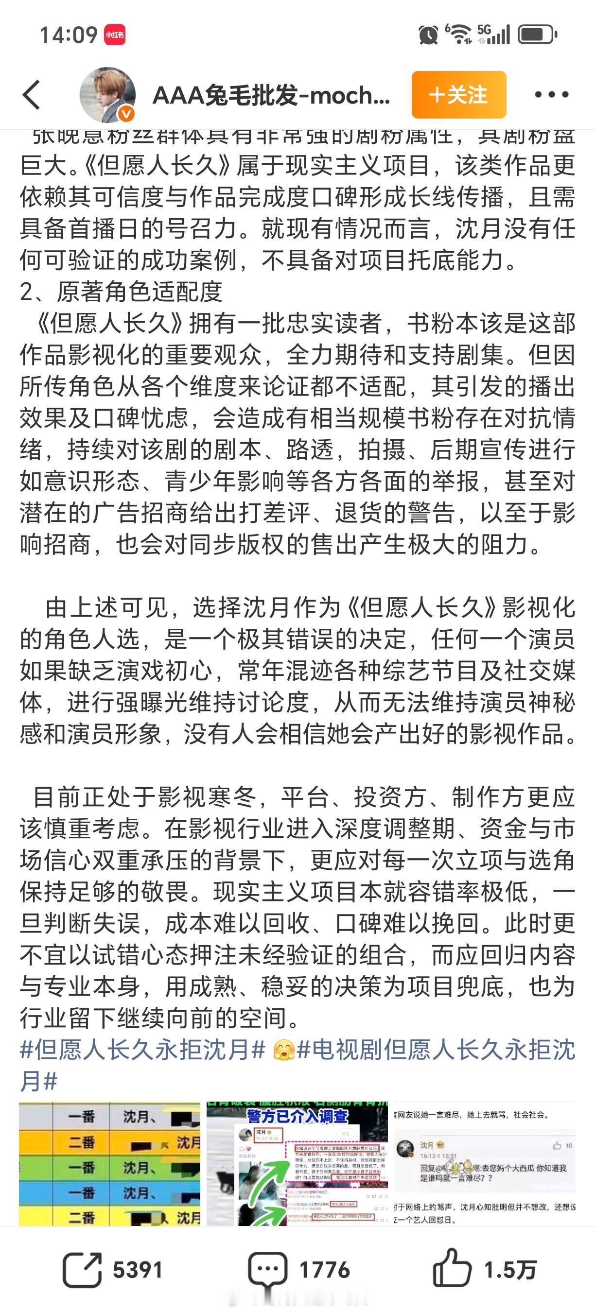 张晚意粉丝写了万字长文来喊话《但愿人长久》剧组换掉女主沈月.....我不太理解,不是定了吗?而且沈月cp都蛮火的,干嘛拒?