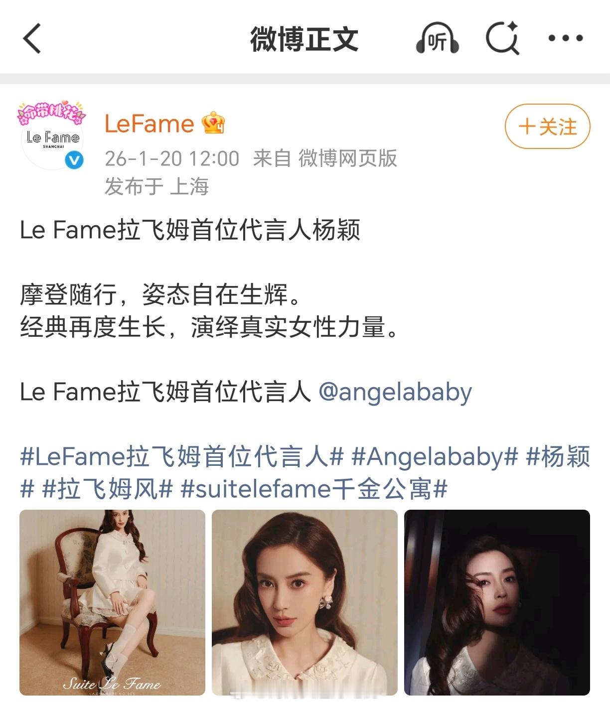 Angelababy官宣LeFame拉飞姆首位代言人鼻姐脸在江山在,超美。