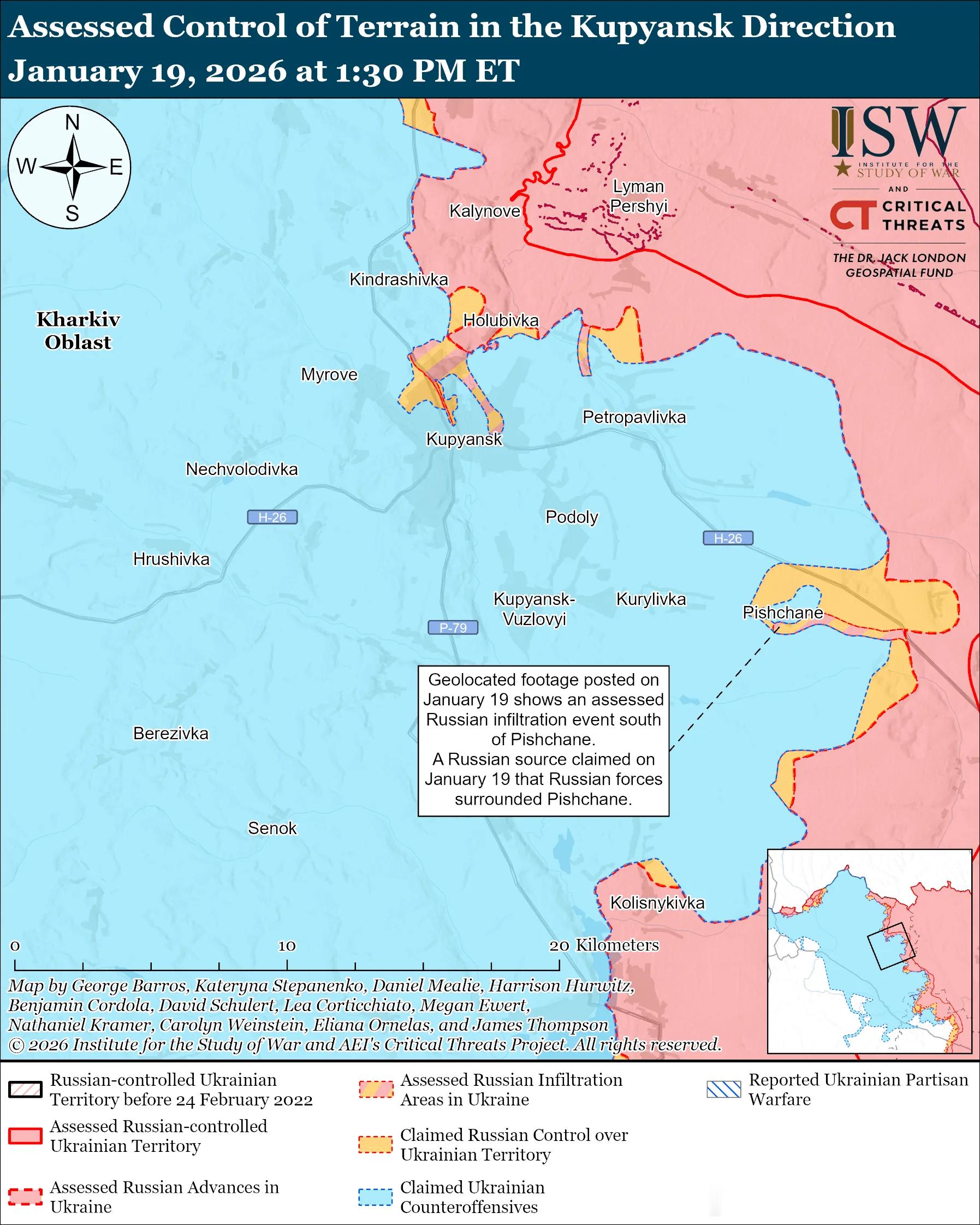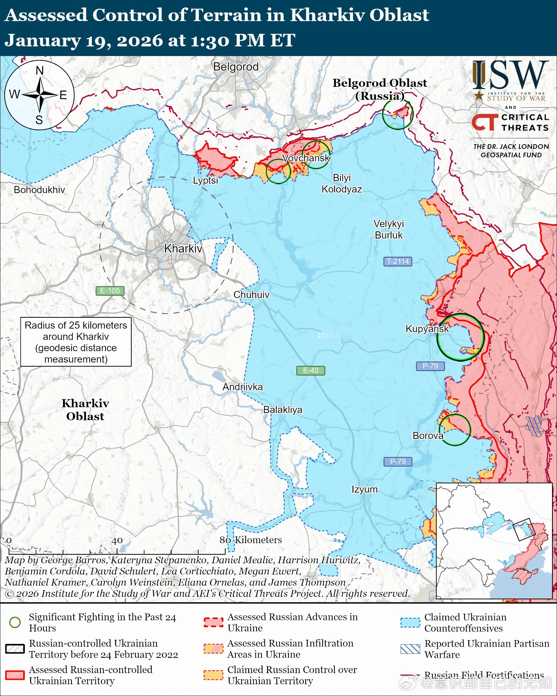 俄军主要行动2——奥斯基尔河俄军目标:渡过哈尔科夫州的奥斯基尔河,向西推进至哈尔科夫州东部和顿涅茨克州北部。1月19日俄军继续向库皮扬斯克方向发起进攻,但并未取得确切进展。评估俄军渗透:1 月 19 日发布的地理定位视频显示,乌克兰军队在皮沙内(库皮扬斯克东南)以南袭击了俄军。ISW 评估认为这是一次俄军渗透任务。未经证实的说法:一位俄罗斯军事博主声称,俄军包围了皮沙内。1月18日和19日,俄军在库皮扬斯克及其附近地区发动进攻;向库皮扬斯克以北的霍卢比夫卡方向进攻;向库皮扬斯克以东的彼得罗巴甫洛夫卡、波多利和库切里夫卡方向进攻;向库皮扬斯克东南的斯捷波瓦-新谢利夫卡和皮什恰内方向进攻,并向库里利夫卡方向进攻;以及向库皮扬斯克以南的库皮扬斯克-武兹洛维方向进攻。据一位与俄北方部队集团有关联的军事博客作者声称,乌克兰军队在库皮扬斯克进行了反击。乌克兰联合部队特遣部队发言人维克托·特列胡博夫上校于 1 月 19 日报告称,15 个乌军营并未被包围在库皮扬斯克-武兹洛维——这与俄罗斯总统普京的说法相反。1月18日和19日,俄军在博罗瓦东北部的博里夫斯卡安德里夫卡附近、博罗瓦东南部的尚德里霍洛韦附近以及博罗瓦南部的奥列克桑德里夫卡附近发动了进攻。1月17日至19日,乌克兰军队继续对被占领的卢甘斯克州的俄罗斯军事目标进行打击。乌克兰无人系统部队(USF)指挥官罗伯特·“马扎尔”·布罗夫迪少校于1月19日报告称,乌克兰军队使用FP-2无人机袭击了位于被占领的新克拉斯尼扬卡(距前线约33公里)的俄第51合成集团军的无人机仓库。