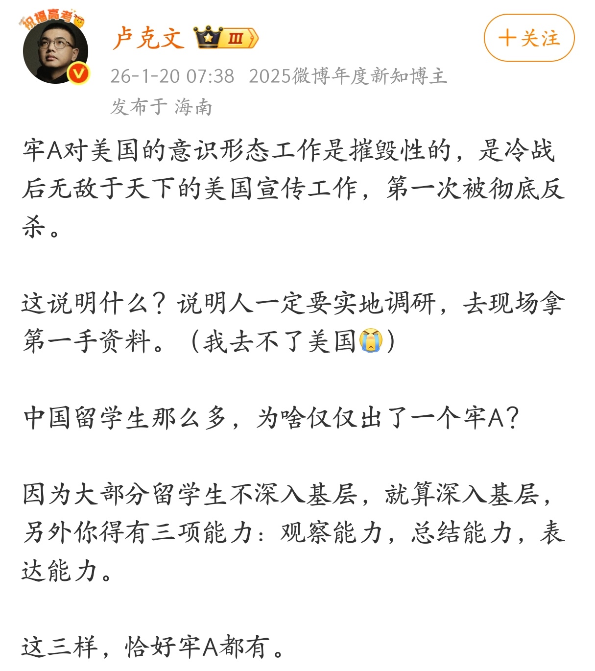 卢克文:中国留学生那么多,为啥仅仅出了一个牢A?