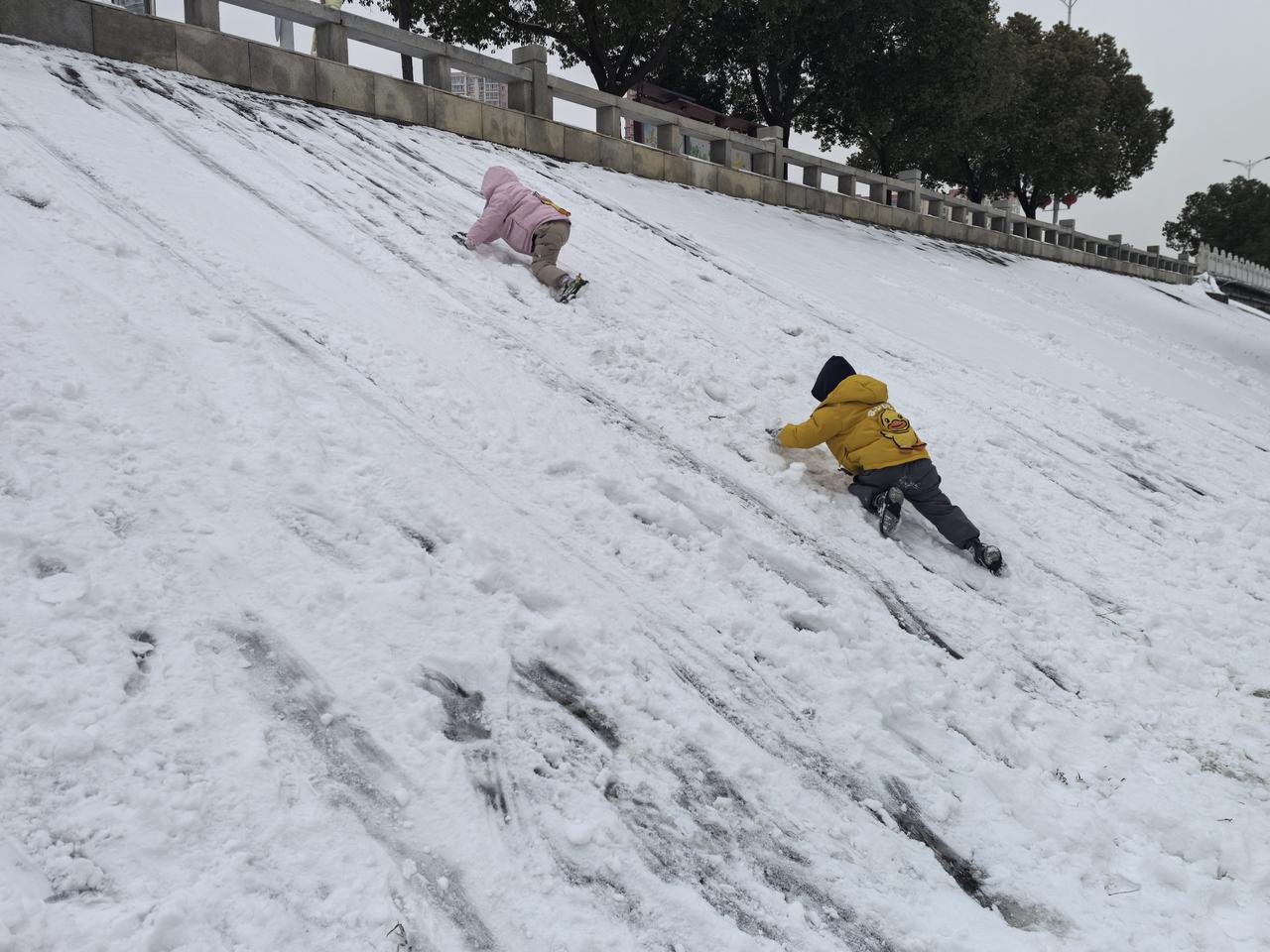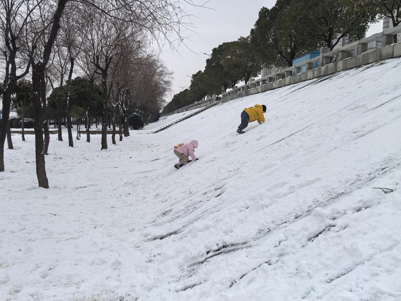 雪后的南阳白河河堤就是小朋友的快乐源泉。 南阳的这场雪纷纷扬扬下了一