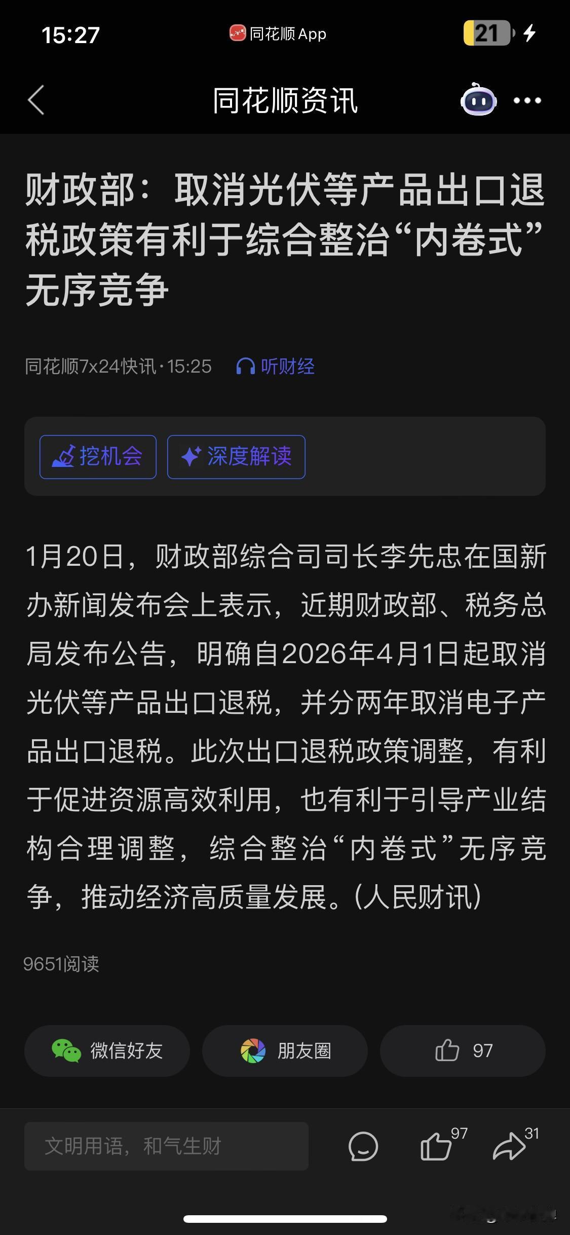取消光伏出口退税是对的。用自己本该分给国民的生活费贴补出口,让人家产业团灭,自己人生活艰难,这样出口的意义损人不利己。不只是光伏,全面取消一切出口退税才对。我们的劳动成本已经世界最低,何必还要去贴补关税?全面取消退税,把这些钱给民生社会保障不好吗?