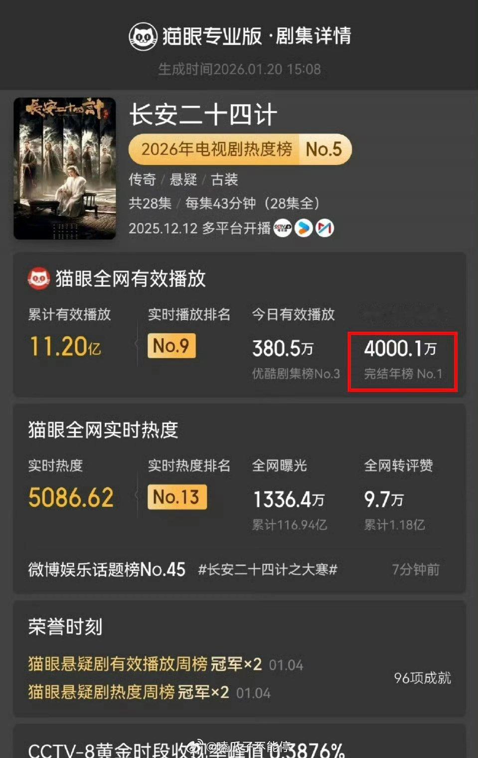 成毅《长安二十四计》热播期结束了,云合集均1827w,你看这部剧了吗
