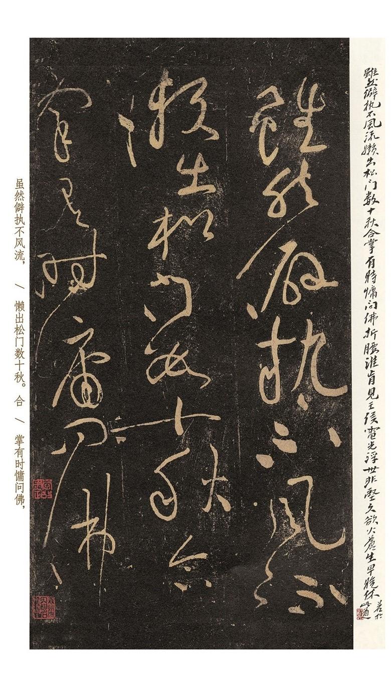黄庭坚又一神秘孤本问世!专家评为“一级国宝”,水平甩苏轼10条街 世人学习书法,多选晋唐法帖,实际上,若想参透艺术之妙,临学宋人作品,非常有必要,宋朝推崇“尚意”,强调以意驭法、个性表达和意趣抒发,用笔随心所欲而不逾矩,犹如天然化成,极具艺术感。 譬如“宋四家”的法帖,风貌鲜明,各有特色,境界十分高妙,当然宋朝精于书法的高手,并非只有这4位,南宋时期,赣州知府聂子述,在任职期间,曾整理家藏,并搜集法帖,制作出一部《郁孤台法帖》。 卷内囊括苏轼、蔡襄、黄庭坚、宋徽宗、李建中的书法,原帖现存上海图书馆,属于“国家一级珍宝”,千百年来,书法界一直认为苏轼的水平,当为“宋朝第一”,实际上,他的徒弟黄庭坚也是不遑多让。 尤其是草书,在整个宋朝,黄庭坚的水平最高,水平甩苏轼10条街,今天就欣赏一下,《郁孤台法帖》中的黄庭坚草书,其内容为抄写的禅诗,共有近20首。 由聂子述刻印,他是南宋的大藏家,不仅选出最精善的法帖,摹刻和拓印水平,也十分高超,把每个细节,以及书法风格、神韵,全部还原纸面。 字字清晰、生动,细节完备,采用中锋运笔,侧锋和尖锋用于衔接,线条方圆尽备、浓淡有序,笔画时而缠绕连转,时而锐利飞动,构势欹侧动荡,开阔大气,多重效果的加持,为此帖赋予鲜明的动感和活力。 并且仔细观察,很多字体旁边,带有红色小圈和注解,批注多是古人写的释文解析,至于红圈则是古人观摩时,选出的精妙草字,这些古人备注,充分证明此帖之高妙,对于我们理解和学习,也有一定帮助。 除此之外,每篇开头的题目,以及靠近卷尾的4行字体,由黄庭坚采用楷书所写,他的行书和草书比较常见,楷书十分稀少,别看此卷只有寥寥几字,但是达到生平的“巅峰水准”,长枪大戟、大开大合,端庄又独具气魄和个性。 近几年黄庭坚的草书和行楷等,在拍卖市场、书法展览等,深得青睐,此作内容精悍,字体清晰,凝其笔法精髓,非常值得临摹,可掌握黄庭坚的开张、潇洒之风,利于日后个人创新。 而今,我们对黄庭坚《郁孤台法帖》,进行1:1超高清复刻,采用博物馆级别,12色微喷复刻工艺,与原作毫无二致,此品乃是手工经折装,装裱精细,便于翻折和临摹。 全卷加入现代字注释,帮助初学者识读,字体十分高清,市面罕见,独此一家,比普通印刷品更加还原、细腻,所有细节处理,全都一览无余,见此品如见原作,若您喜欢可以点击下方商品链接一观。 黄庭坚草书《郁孤台法帖》宋拓孤本 高清原大微喷复刻手工经折装