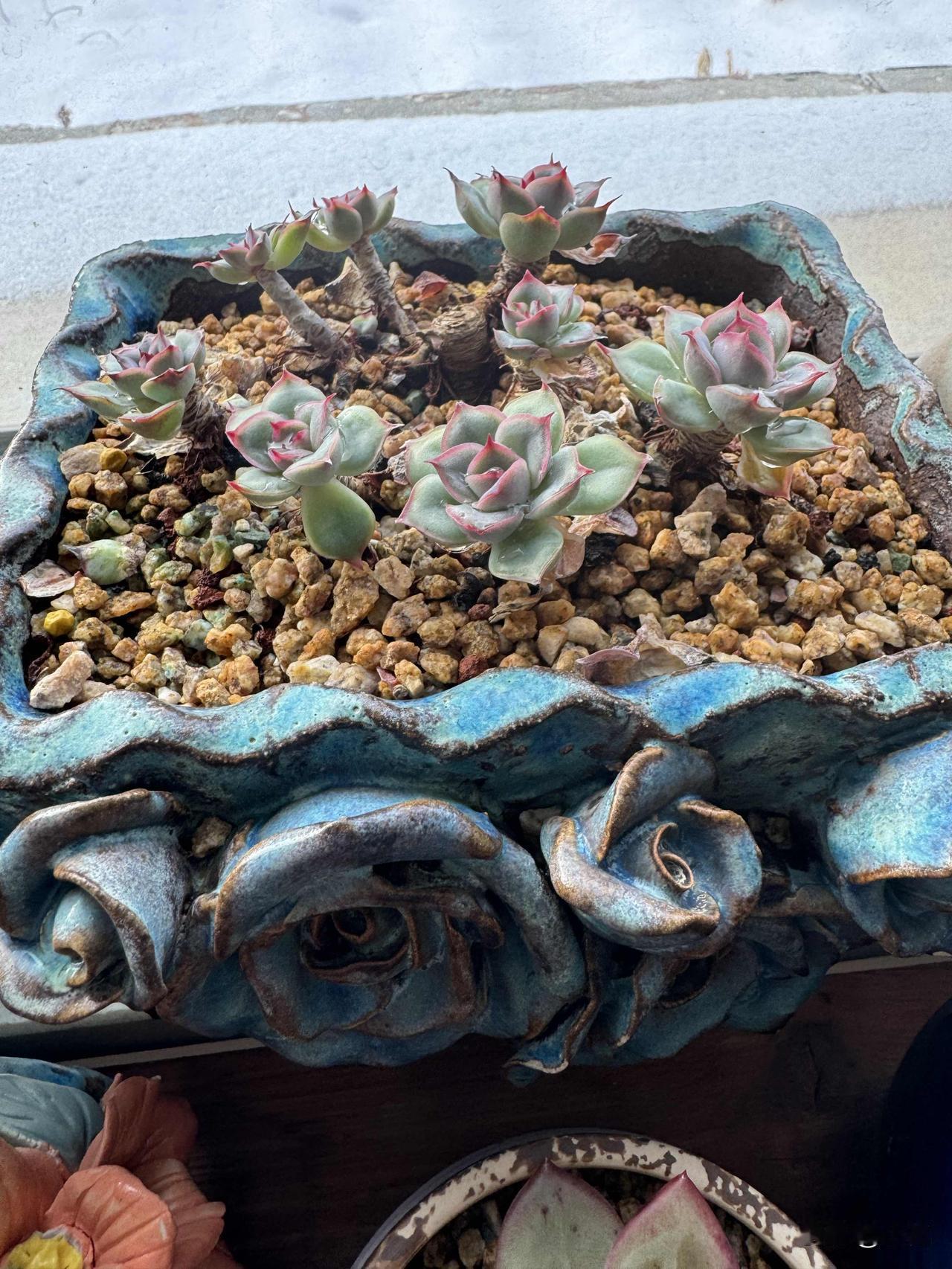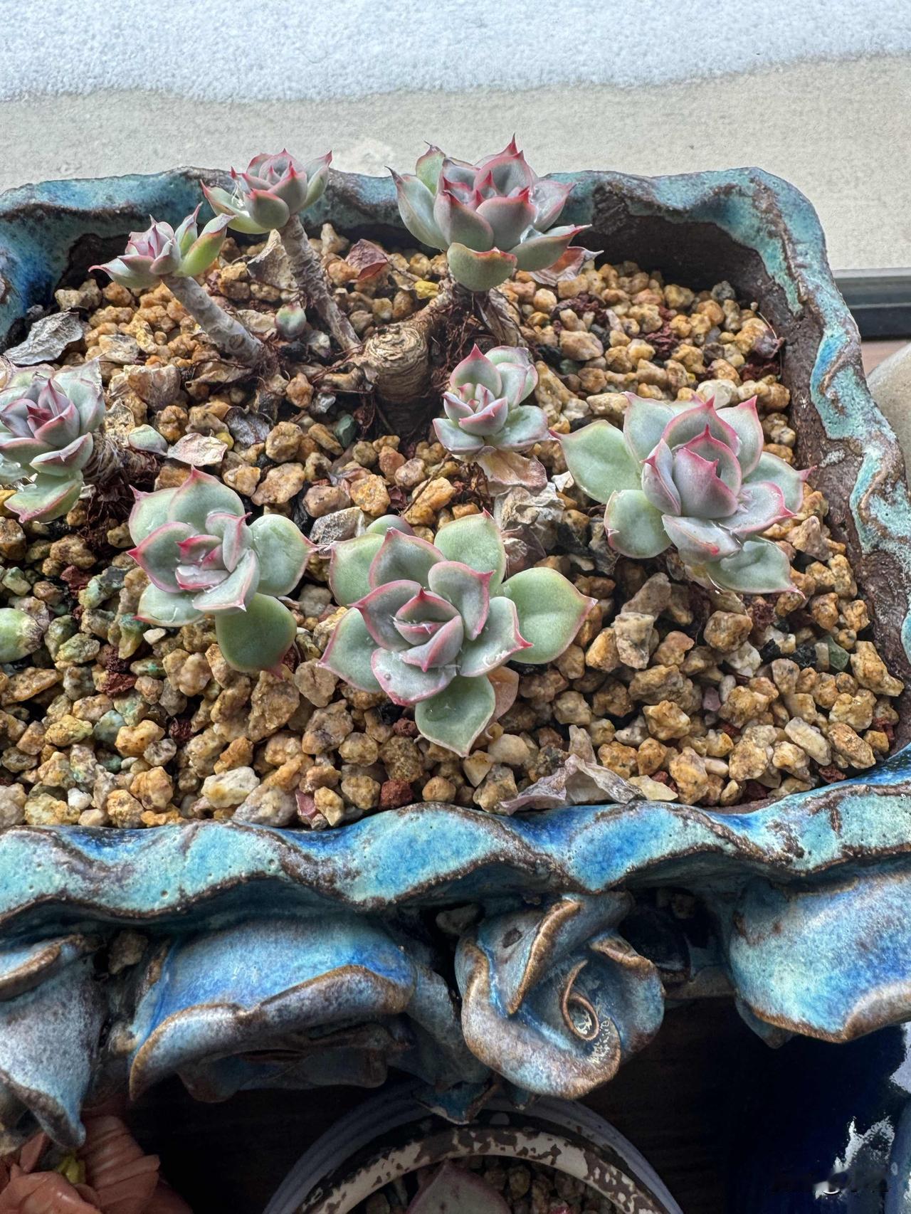 我超爱猎户座这款多肉!它是景天科拟石莲属的,叶片长匙形,有层薄白霜,叶缘还有半透明冰边,平常是瓦青色,光照足、温差大时叶缘和叶背会变红,美极了。 我这盆多头猎户座,之前入盆颗粒土放多了,叶片小小,长得慢。现在冬天不适合换盆,只能先让它活着。等春天就给它换土,多加点土,让它枝繁叶茂。就像艾伦和唐印,曾经不起眼,后来也美得让人爱不释手,我相信我的猎户座之后也会状态超棒! 2026年1月20日