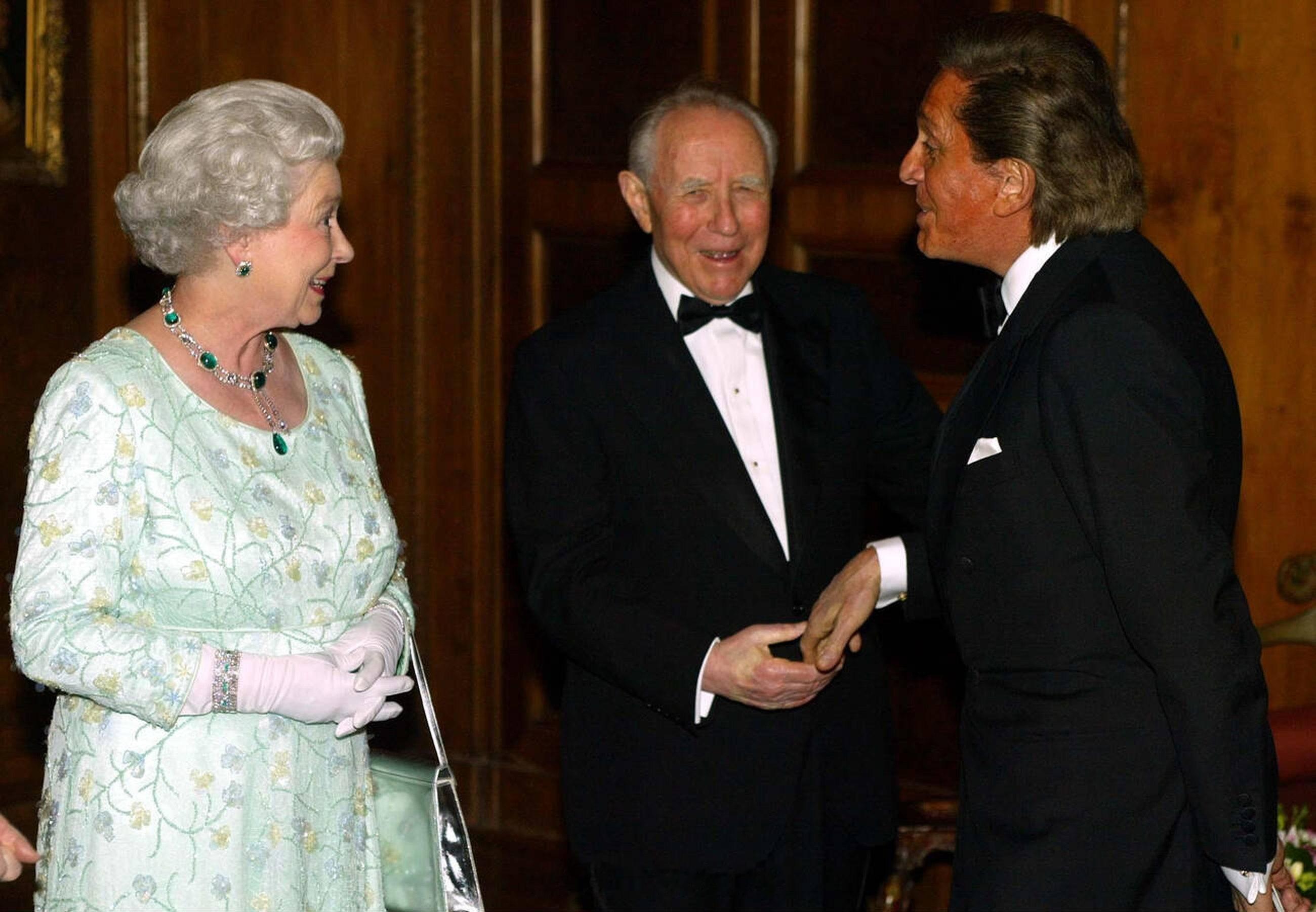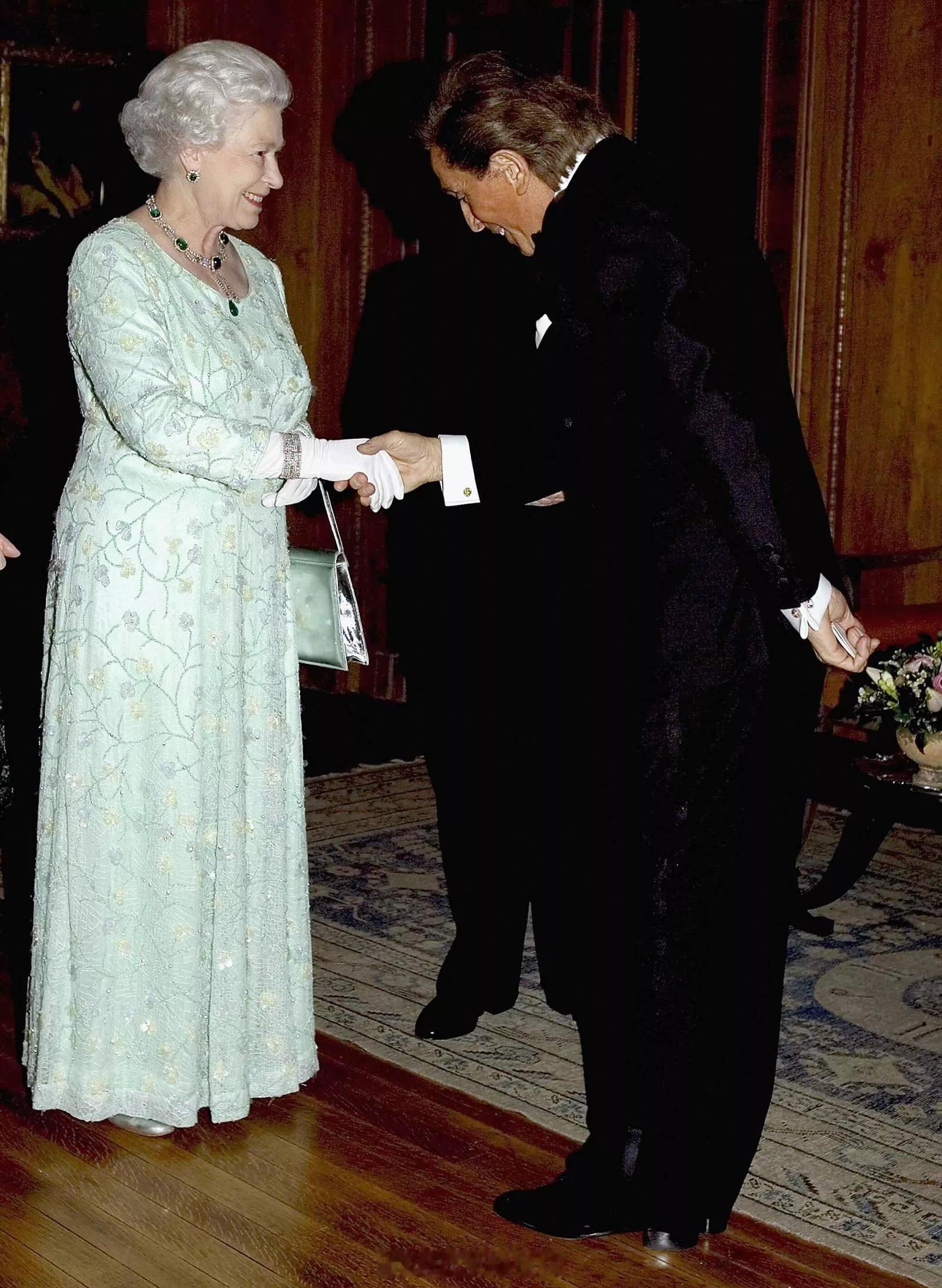 英国王室 谨以纪念意大利知名时尚设计师,华伦天奴品牌创始人瓦伦蒂诺·加拉瓦尼(Valentino Garavani)🕊️2005年3月16日,正值意大利国访期间,伊丽莎白二世女王在伦敦意大利驻英大使馆举行的国宴上与意大利知名时尚设计师瓦伦蒂诺·加拉瓦尼握手交谈🤝🏻