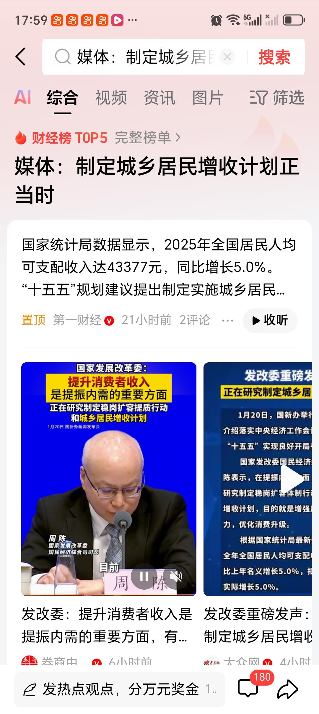 媒体:制定城乡居民增收计划正当时 媒体说制定城乡居民增收计划正当时,还真有道理。国家统计局数据显示,2025年全国居民人均可支配收入43377元,比上年名义和实际都增长5.0%,“十四五”期间一直稳定增长。 “十五五”规划建议和中央经济工作会议都明确提出要制定实施增收计划,国务院常务会议也强调相关工作。国家发改委也在研究制定。增收不只是为了扩大消费,更关乎分配制度改革,让大家享受国家发展成果。现在内需是经济增长稳定锚,2025年内需贡献率超67%,消费贡献率达52%,此时推进增收计划,正当其时!