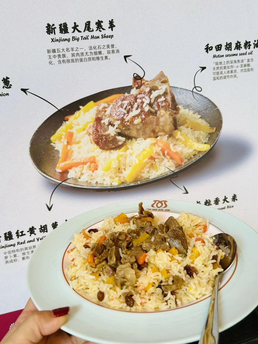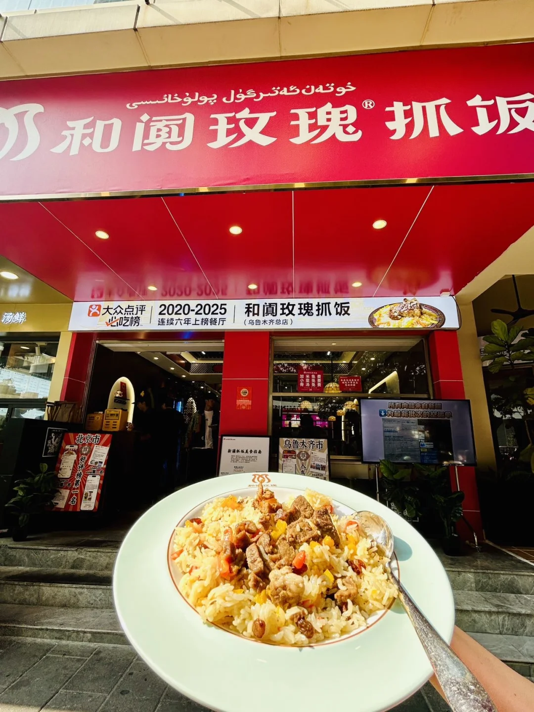 在新疆的饮食江湖里~ 抓饭是刻进新疆本地人骨血的味道👅 创始人扎根新疆10多年~ 深谙抓饭的精髓在于米与肉的灵魂契合🤝 精选的长粒米,要在清水中泡出韧劲🍚 羊肉则严选牧区鲜羊,慢炖至软糯离骨🦴 每一粒米吸饱肉汁,每一块肉裹着米香🤤 这碗抓饭成了无数人“入疆第一站”的味觉记忆 📍和阗玫瑰手抓饭(南山中心店)