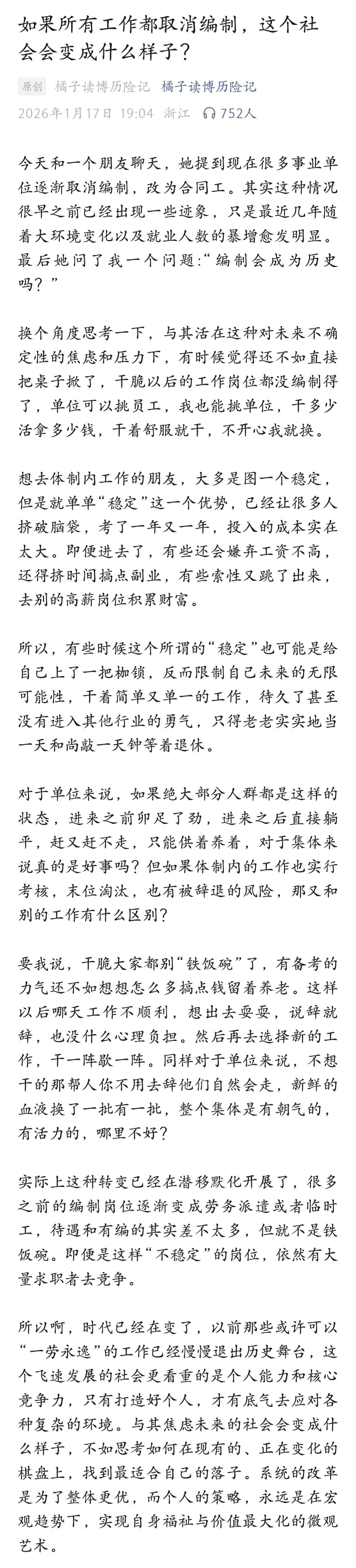 如果所有工作都取消编制,这个社会会变成什么样子?