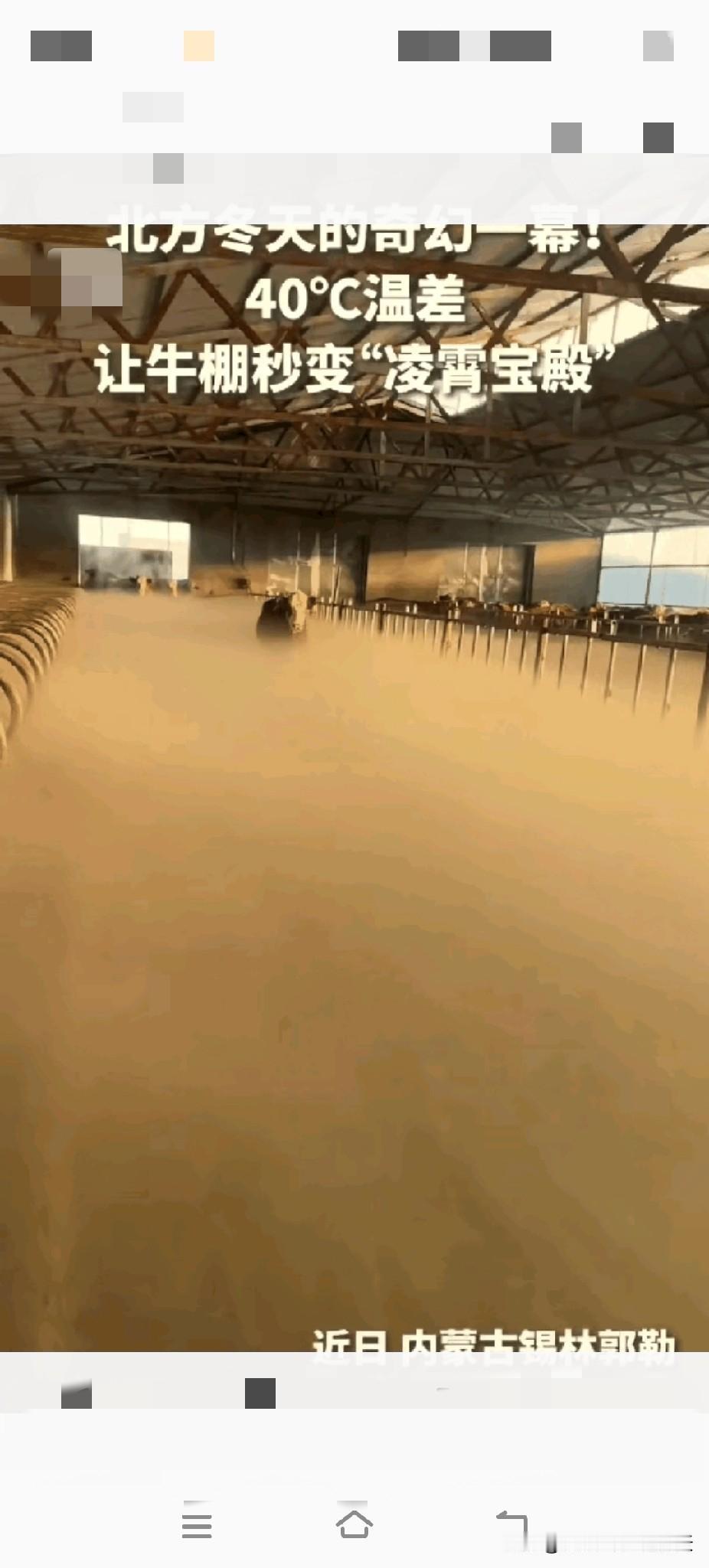 没想到上人民日报了!内蒙古,女子清早起来去牛棚喂牛,不料一推开门直接傻眼了,棚子里竟白茫茫一片,几十头牛在雾里忽隐忽现,像玉皇大帝的凌霄宝殿。 当天,女子一早推门喂牛,眼前直接飘起仙气,能见度很低,牛群跟腾云驾雾似的。 女子当场就笑出了声,手里的草料桶都差点没端稳,举着手机怼到跟前拍,镜头里的牛儿们只露出毛茸茸的脑袋和晃动的牛角,厚实的雾气裹着它们的身子,连呼吸都能喷出白花花的雾团,活脱脱一群下凡的仙牛。她一边拍一边喊:你们这是集体渡劫来了?话音刚落,最前头的老黄牛甩了甩尾巴,雾丝跟着飘散开,又很快合拢,把牛尾巴藏得严严实实。 那天内蒙古当地清晨气温低到零下30度,牛棚里的温度温差较大,加上棚子通风口没开,女子早上一开门外面冷空气全部冲进去,才凑出了这罕见的仙境。有网友评论说,这哪是牛棚,分明是牛魔王的水晶宫,还有人调侃:牛都成仙了,挤出来的奶是不是得叫仙奶? 其实这种雾中奇景,近期北方不少地方都出现过。前几天河北网友拍过雾里的羊群,远远看去像移动的白云;跟卡通片似的。这些场景之所以让人觉得新鲜,说到底是因为我们总盯着远方的风景,却忘了身边的日常里藏着最治愈的小惊喜。 女子说,平时喂牛就是重复的活儿,没想到一场雾让平凡的早晨变得不一样,发到网上还被人民日报转发,心里又意外又开心。可不是嘛,生活哪需要刻意去追什么诗和远方,可能就是推开门的一瞬间,雾里的牛群、窗台上的霜花、路边冒热气的早点摊,都藏着让人眼前一亮的美好。 你有没有在不经意间遇到过这种自带滤镜,的日常趣事?是雾里的动物,还是雨后的街道?欢迎在评论区分享你的小幸运~