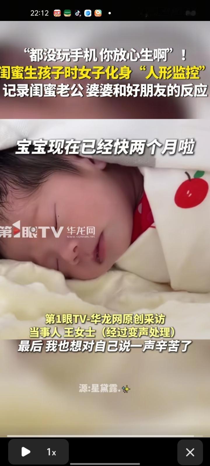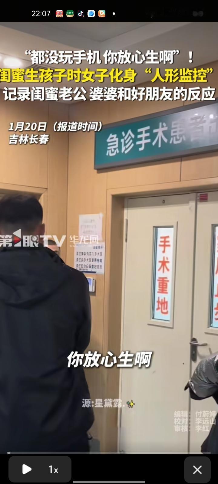 1月19日,吉林长春。闺蜜生孩子时女子化身“人形监控”,记录闺蜜、老公、婆婆和好朋友的反应,如今宝宝现在快两个月了。 当事人王女士称,生产时我特别好奇产房外的情景,让相识七年的闺蜜帮我记录产房外的情景,她真的很尽责。镜头里,我老公一直守在门口没有玩手机,婆婆也坐立不安的守着,姐姐和朋友在紧张地计算着我进去了多久,看着每个人都在真切为我担忧和牵挂。最后,我想对自己说一声辛苦了。