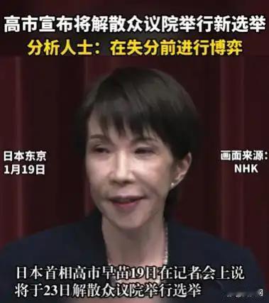 高市早苗要解散众议院这事儿,可真是一石激起千层浪。从政治角度看,解散众议院意味着重新洗牌,选举结果充满变数。高市早苗这么做,或许是想在局势上争取更多主动权,打个出其不意。 不过,这也可能是一步险棋。重新选举耗费大量人力、物力和财力,民众是否买账还两说。要是新选举结果不理想,那她可就搬起石头砸自己脚了。而且在当前复杂的国际形势下,日本国内也有诸多问题亟待解决,此时搞这一出,能否给日本带来积极变化,真得打个问号。