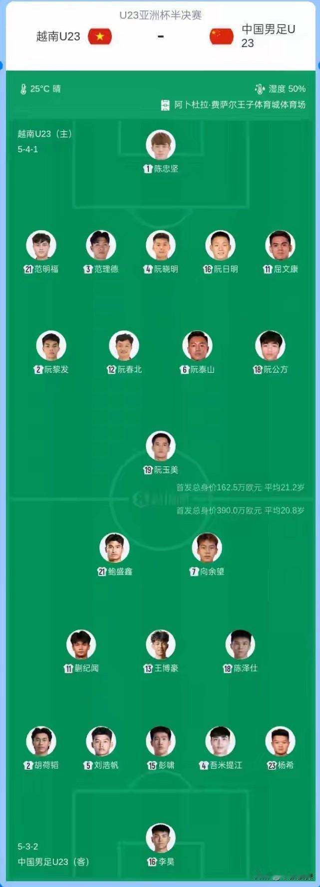 中国队今晚首发大变。锋线全换!王玉栋似乎在国际比赛毫无作为,还不爱回来防守,象个大牌一样站在中场看着对手在自己禁区前沿天翻地覆。今晚首发中锋鲍盛鑫和向余望。好在蒯纪闻首发,不过毛伟杰至今没出场。实在是无法理解安东尼奥的眼光。这批U23核心其实就应该是去年的U20。