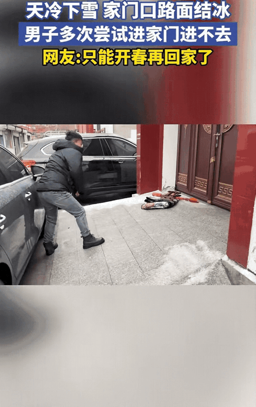 笑不活了!山东一名男子开车回自家门口,愣是半天进不去。原来是天冷,家门口的坡结了冰太滑,男子试了好几次往上开,都滑了下来。 说真的,这男子咋不想想别的办法呢?不能从旁边绕上去吗?非要硬冲这个坡。或者去邻居家借点热水浇在地上,冰不就化了? 网友都乐坏了: • 这是滑上瘾了吧?其实买包盐撒上,几分钟冰就化了。 • 建议男子干脆等明年开春再回家吧! • 这房子门口修得太不合理了,要是老人走,不得摔着? 也有人建议,男子有空还是把家门口这个坡改成梯子吧,这坡太不安全了。下雨下雪天又滑又容易摔,出门怕滑倒,回家还上不去。