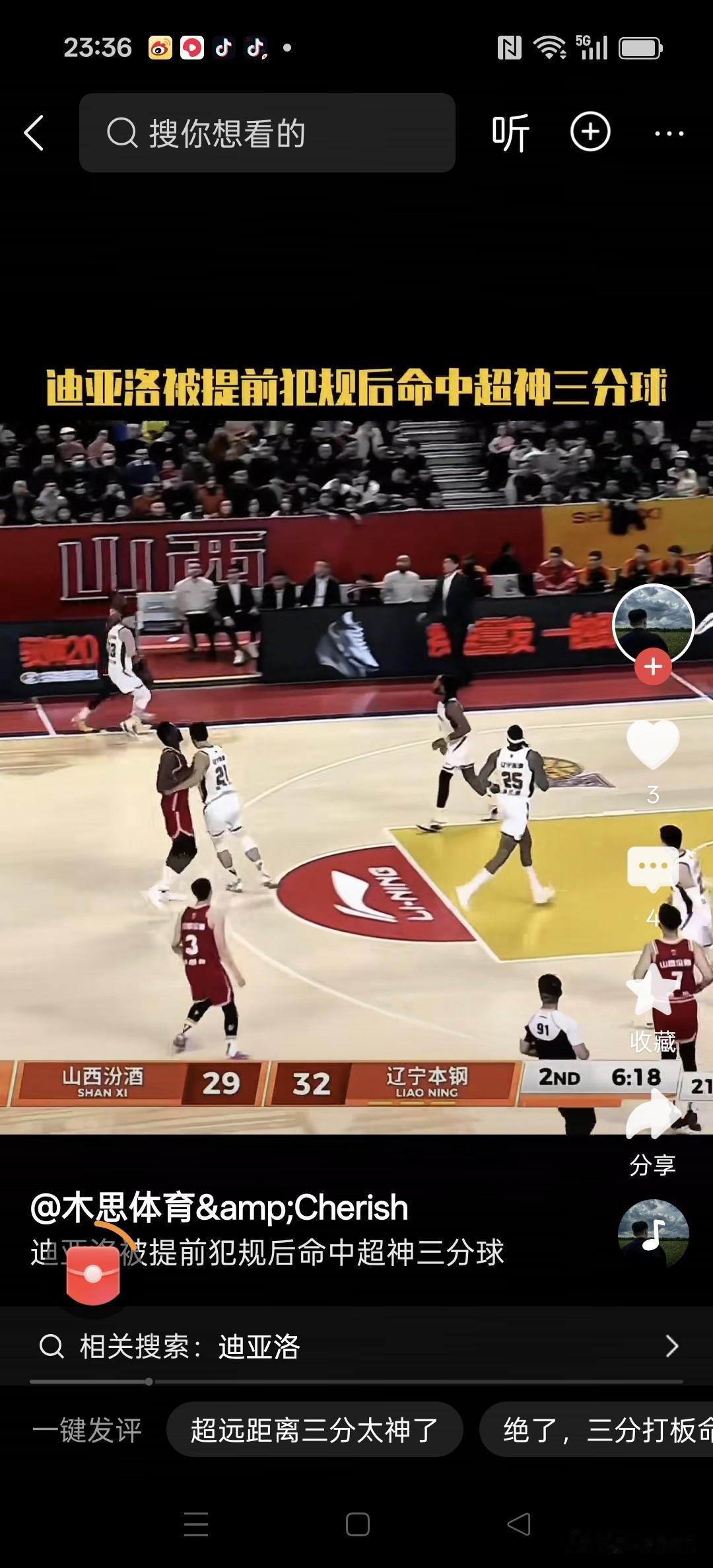 迪亚洛投进三分被裁判判罚无效引发争议。辽宁本钢男篮客场挑战山西汾酒男篮,比赛进行到次节6分18秒时,辽宁本钢男篮球员王岚嵚对迪亚洛施行犯规动作,就在裁判哨子吹响的同时,迪亚洛投进一个三分球。但是裁判认定裁判吹罚王岚嵚犯规在前,迪亚洛出手在后,所以进球无效。此球引发山西现场球迷的强烈不满。尤其是今天晚上,裁判员多次判罚值得商榷。比如,裁判员对辽宁球员严重侵犯焦海龙致伤退场的举动竟然没有判罚是违体犯规。,