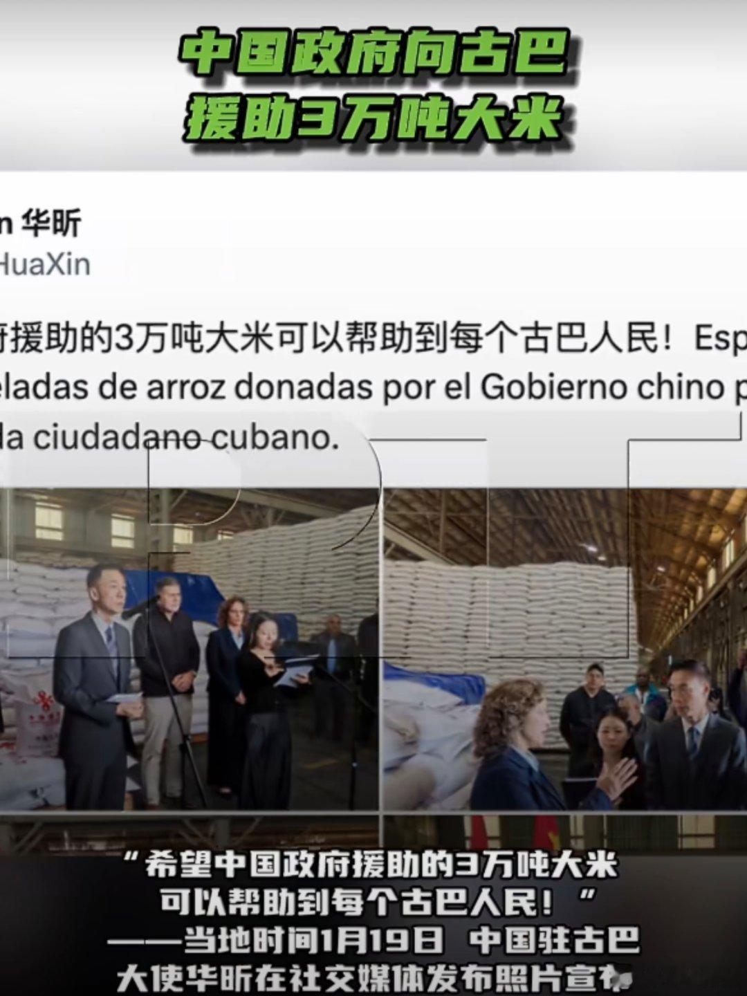 中国政府向古巴援助3万吨大米大哥要做好带头作用