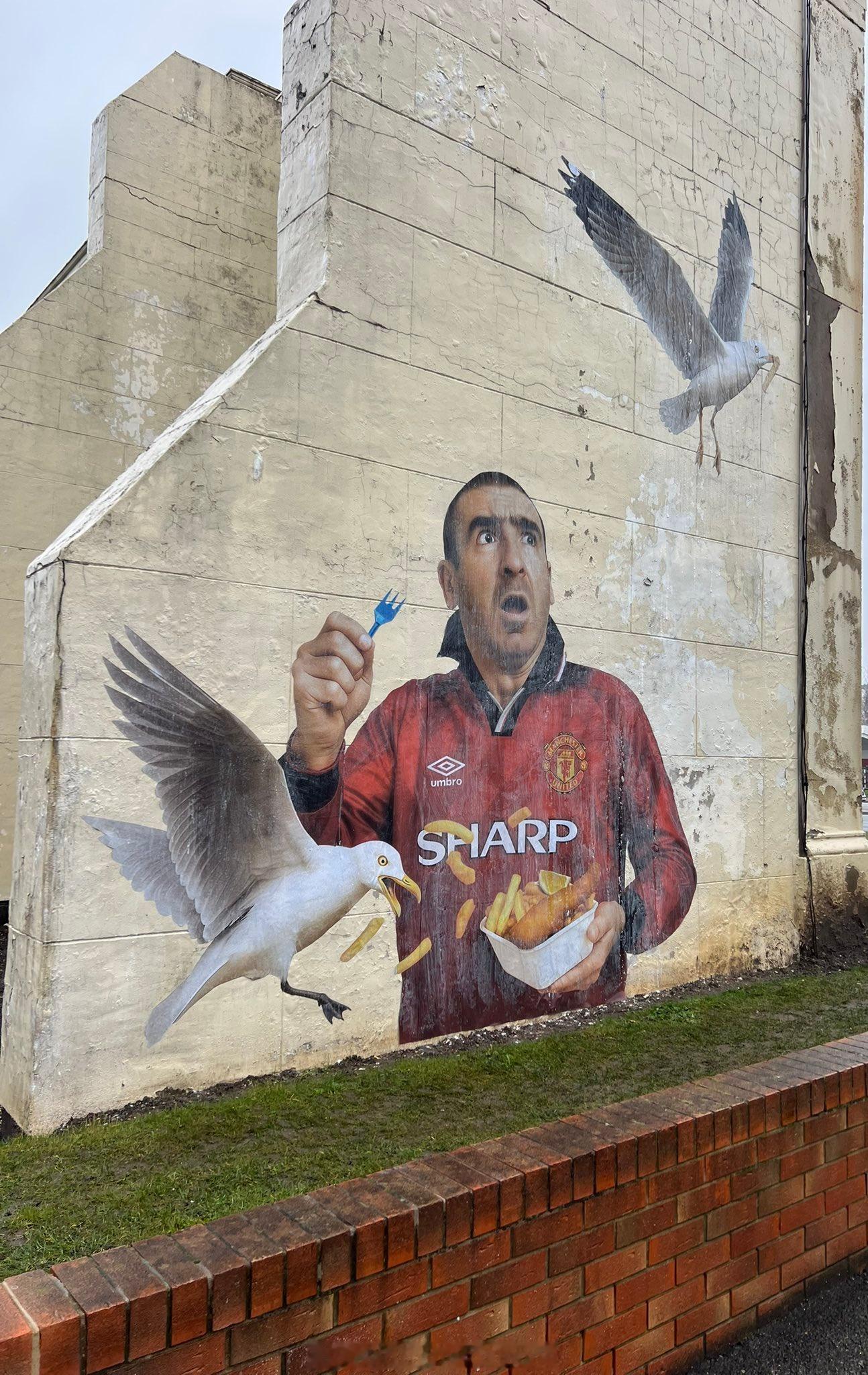 老特拉福德附近的墙绘:坎通纳和海鸥我们都知道那句名言🤓