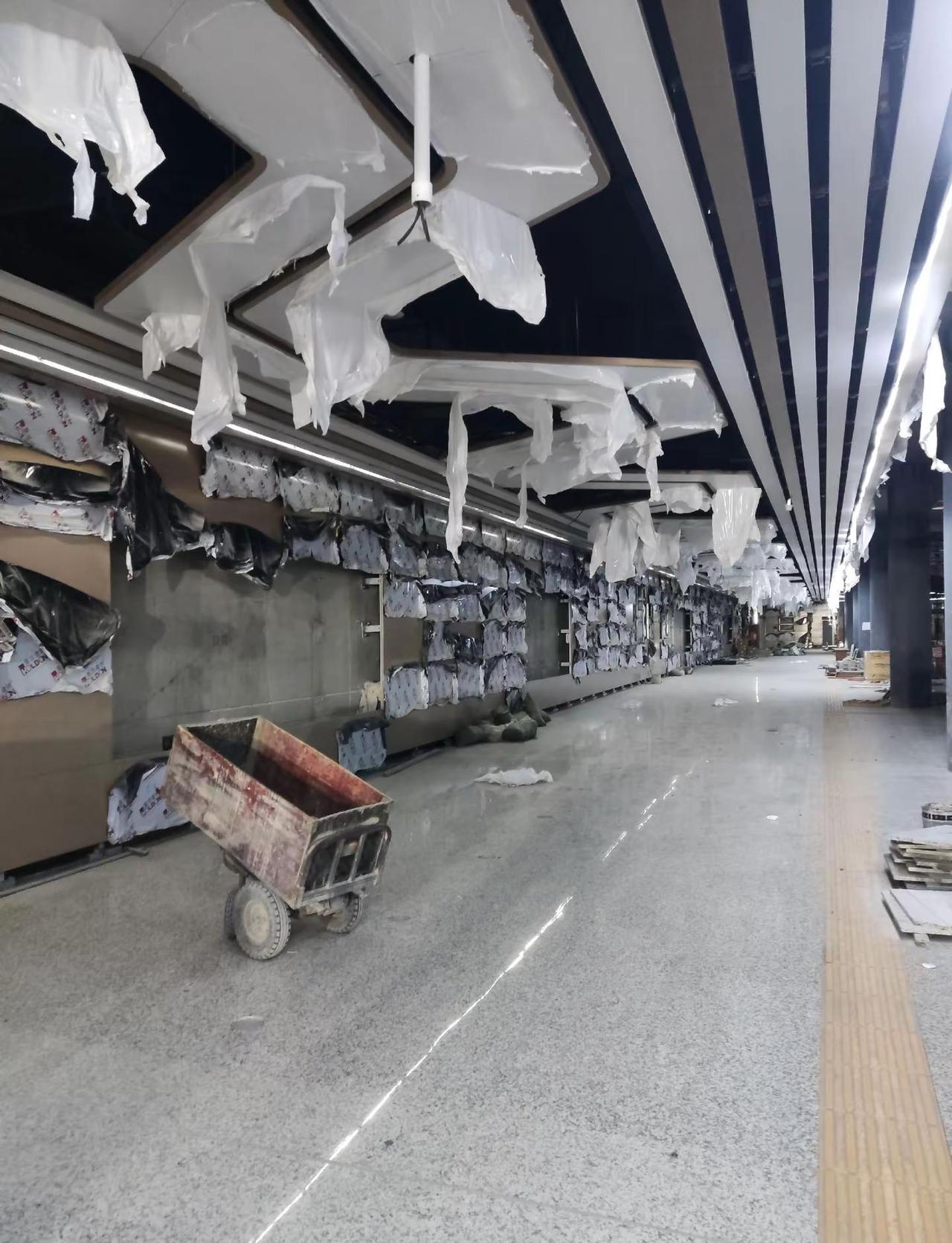 沈阳地铁3号线东段装修进度喜人。示范站进度,已基本完成硬装材料进场,装修进度已正式过半 沈阳