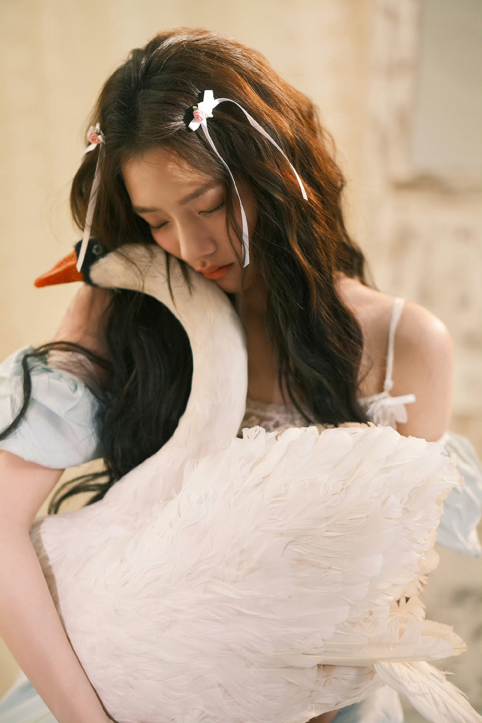 刘亦菲亮相西湖,蓝绸裹身,贵气优雅。刘亦菲
