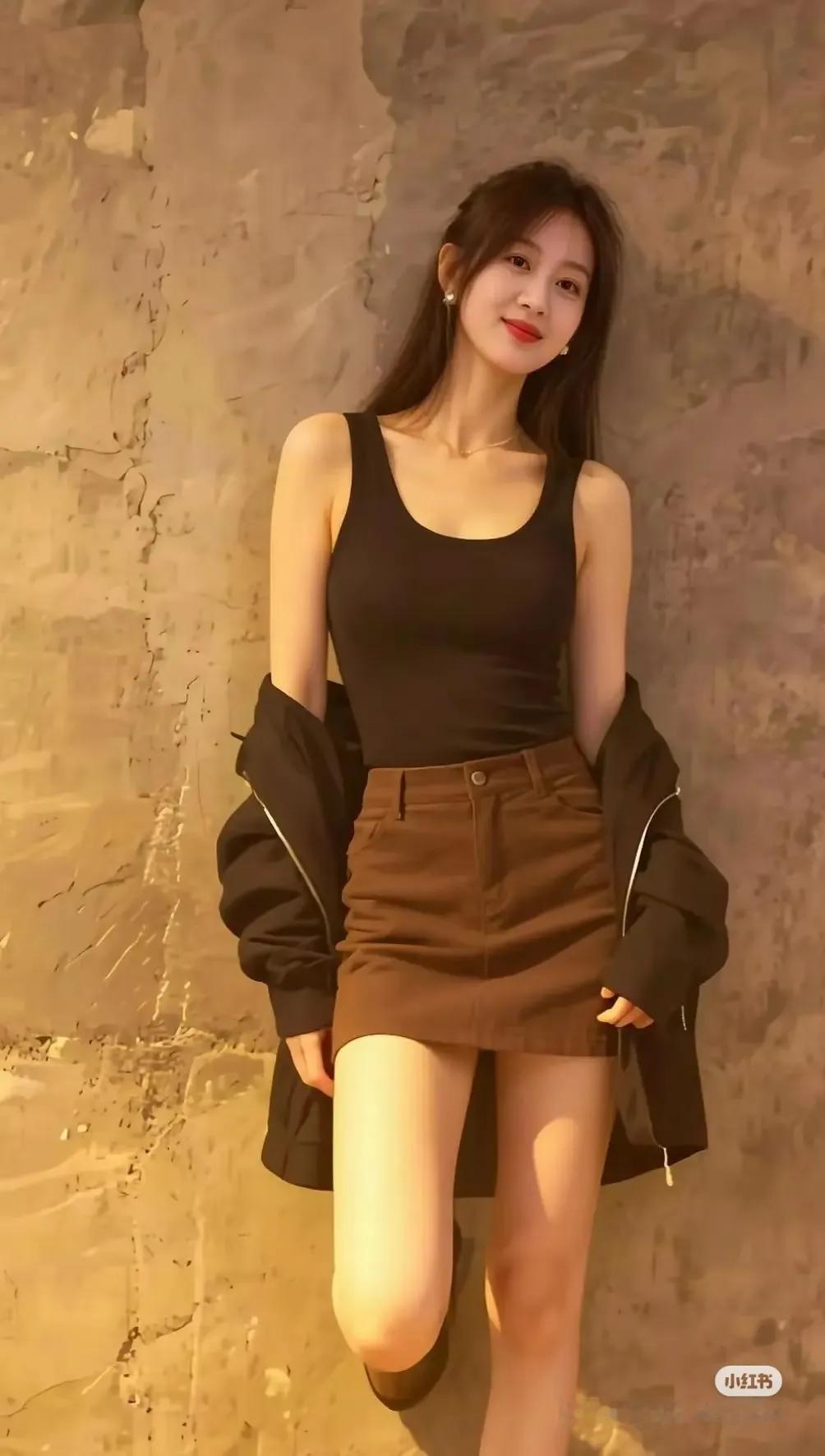 都市街头风,棕色皮夹克搭配黑色牛仔裤,轻松时尚!街拍 高清美女