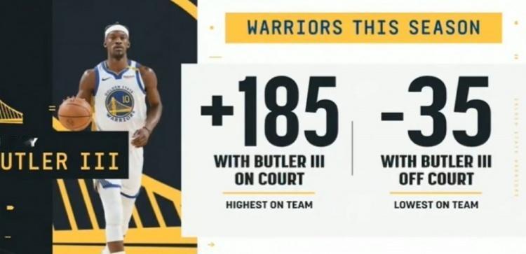 ➡虽然不舍,虽然很难,但断臂求生也许是本赛季最后的机会,毕竟交易截止日还没到金州勇士吉米巴特勒金州勇士 影响力显著!本季巴特勒在场球队正负值+185全队最高 下场后为-35