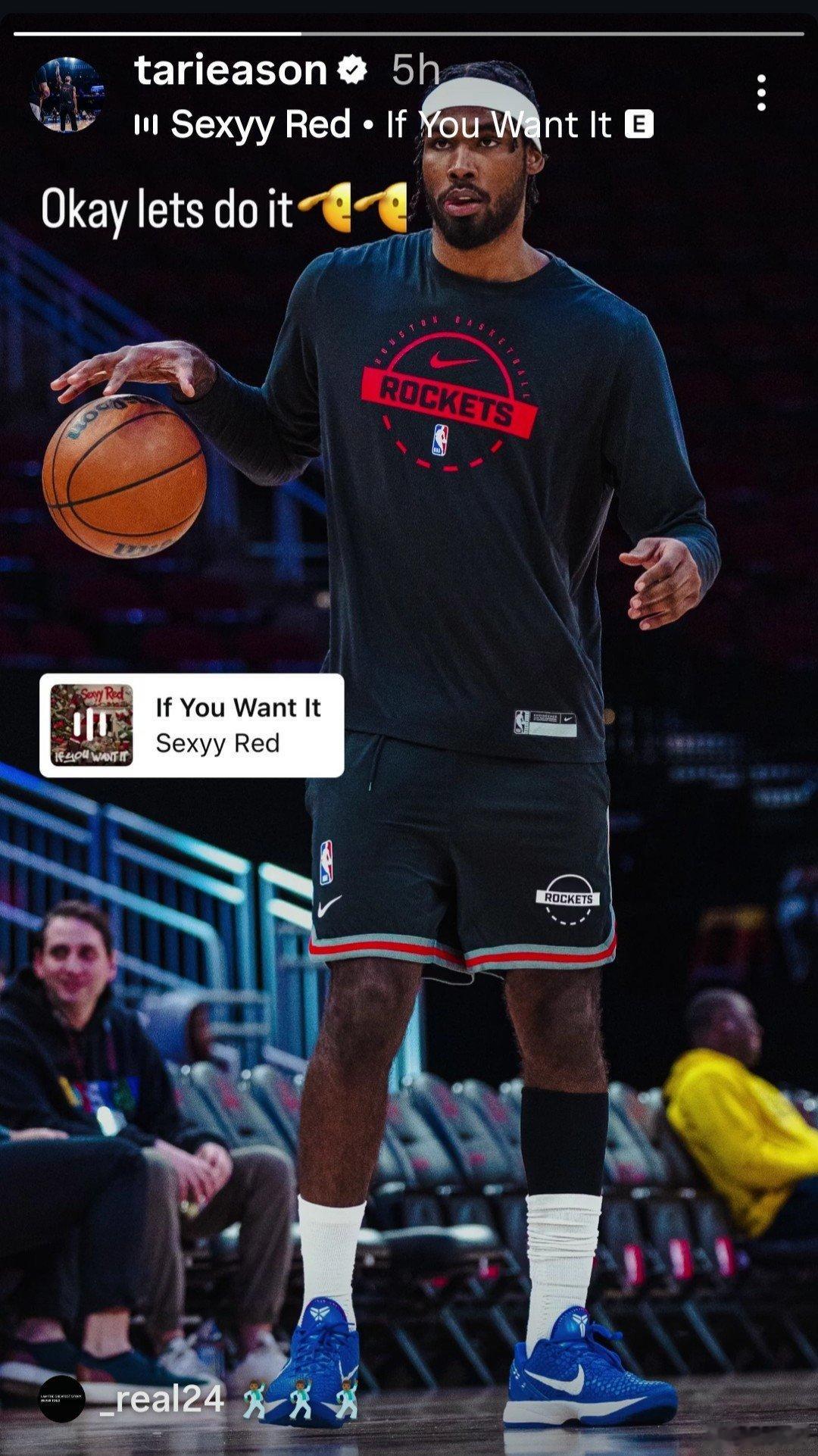 伊森(出战成疑)在其IG快拍中发布了这段内容👀"Okay let’s do it好吧,那就开始吧”背景音乐为《if you want it你若想要》塔里伊森休斯顿火箭