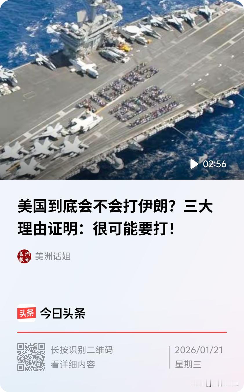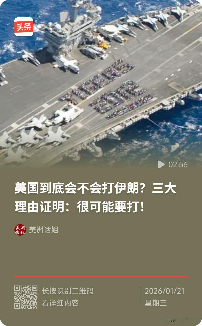 近期美伊关系高度紧张,评论员认为美伊战争可能性仍然较大,主要基于以下因素: 战争信号明显 ● 撤侨调兵动作频繁:1月14 - 15日,美军从卡塔尔乌代德基地撤人,英国关闭驻伊朗大使馆,通知公民撤离。同时,美国将“林肯”号航母打击群调往中东,无人侦察机频繁在伊朗边境活动。伊朗则关闭全国领空,革命卫队进入最高级别战备状态,防空系统全面开启,导弹部队进驻重点区域。 ● 舆论施压不断升级:特朗普公开鼓动伊朗国内抗议者“接管国家机构”,美国财政部门警告与伊朗做生意的国家和企业将面临高额关税惩罚。白宫称外交是“第一选项”,但军事方案已准备好。伊朗指责美国支持国内抗议活动,国家媒体宣传局势是“外部势力干预”结果。 美国方面推动因素 ● 战略利益考量:美国视伊朗为其主导中东地区秩序的最大挑战,长期对伊朗实施经济制裁,试图更迭伊朗政权,当前伊朗国内动荡被美国鹰派当作机会窗口。 ● 特朗普执政风格影响:特朗普偏好“极限施压”策略,行事风格高度不确定,军事选项是其政策工具箱关键一招。他曾下令刺杀伊朗将领苏莱曼尼、空袭伊朗核设施,且绑架委内瑞拉总统马杜罗的实战经验鼓舞其对外施压信心。 ● 国内政治压力:部分美国伊朗裔团体支持特朗普政府强硬立场并开展游说,美国国会的共和党强硬派也长期对伊朗施压,展示对伊朗强硬态度有助于特朗普巩固基本盘、转移国内矛盾。 伊朗方面刺激因素 ● 拥有反制手段:伊朗掌控霍尔木兹海峡这一重要能源通道,多次警告若受攻击将封锁海峡,影响全球能源市场和美国经济。伊朗还表示会打击中东地区美军基地,并将以色列列为首批报复目标,导弹覆盖范围广,对美国和以色列构成威胁。 ● 态度强硬抵抗:伊朗外长称本国不寻求战争,但已充分做好战争准备,议长表示若遭攻击将给美国“永生难忘的教训”。面对美国施压,伊朗毫不示弱,积极采取应对措施。 不过,美伊战争也存在一些制约因素,如美国国内政治对扩大用兵有牵制,国会制衡可能抬高军事行动决策门槛;冲突升级可能使美国难以收束局面;且伊朗局势有降温趋势,强行干预可能面临国内外舆论压力。同时,美伊双方未完全关闭外交渠道,局势还有一定回旋余地。