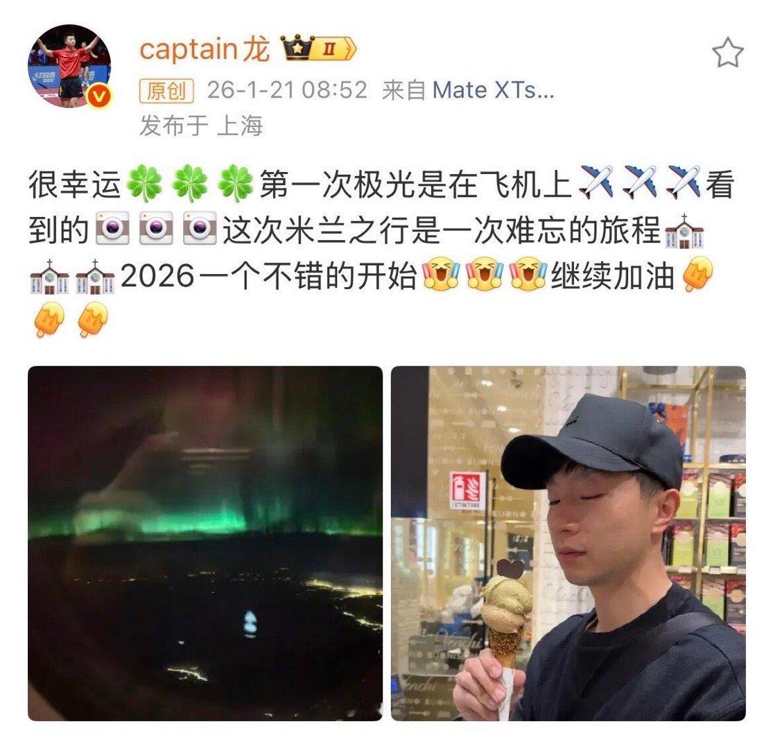 马龙在飞机上第一次看到极光米兰上空的极光撞上甜筒,马龙的旅途小美好送达~ 目之所及是温柔,心里装着满心欢喜,平安喜乐常伴🍀