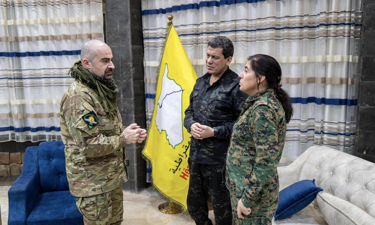这是敦促库尔德斯坦爱国联盟(PUK)领导人巴费尔·塔拉巴尼派遣反恐部队,支援罗贾瓦的叙利亚民主力量(SDF),以应对2026年1月与叙利亚政府军的冲突。自本月初以来,冲突不断升级,导致数千人流离失所,并威胁到库尔德人控制的油田。 随附的图片显示塔拉巴尼与叙利亚民主力量指挥官马兹卢姆·阿卜迪在正式场合和战场上的合影,突显了在打击“伊斯兰国”期间形成的长期库尔德联盟。据联军报告,罗贾瓦部队在打击“伊斯兰国”的战斗中损失了超过11000名战士。