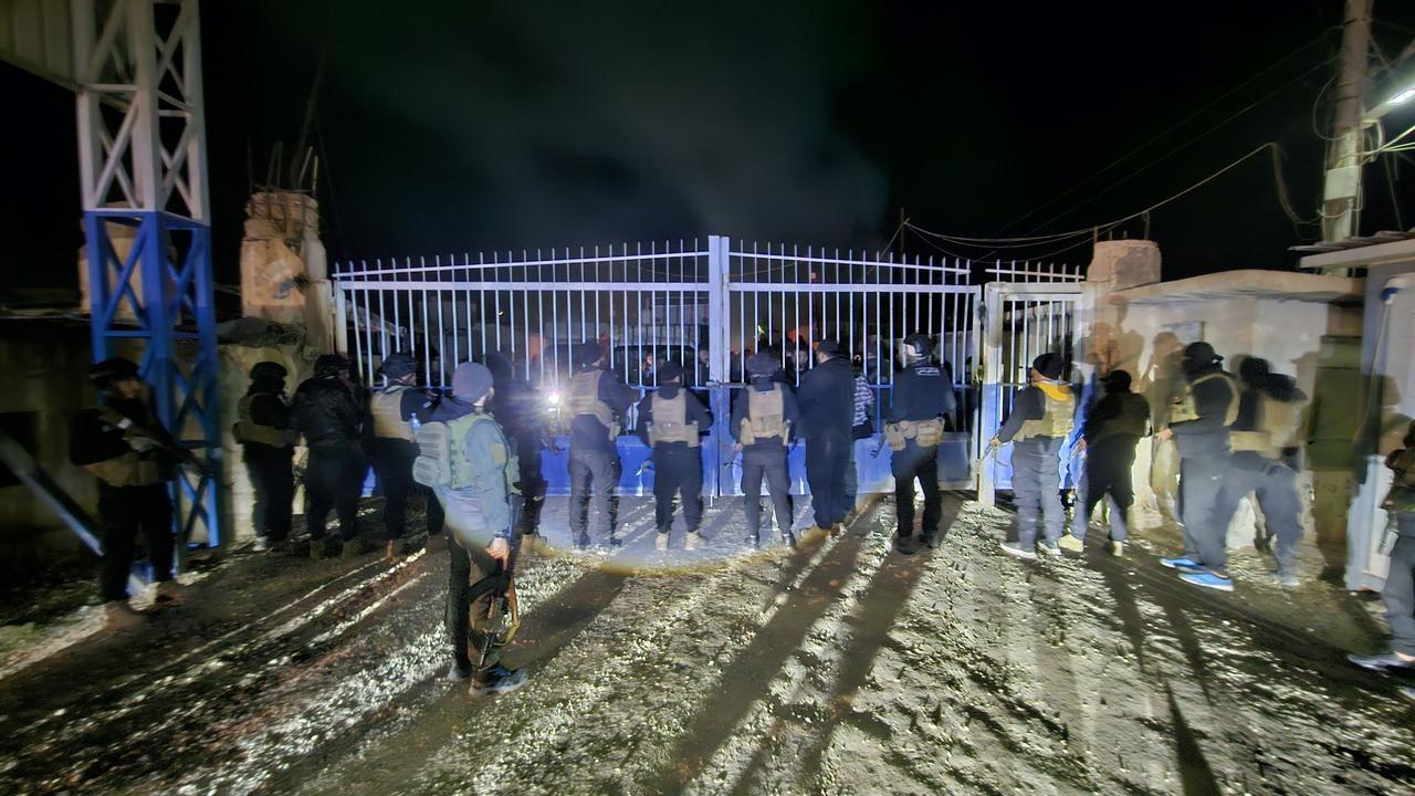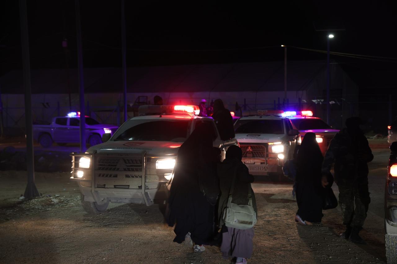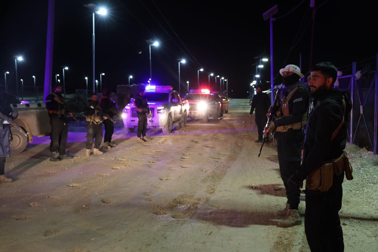 叙利亚内政部在库尔德人领导的叙利亚民主力量(SDF)于2026年1月20日突然撤离后,向叙利亚东北部的哈乌尔难民营部署安全部队的情况。此次部署是在持续不断的冲突和新的停火协议背景下进行的。 照片捕捉到了难民营大门处夜间增援部队的画面,其中包括身穿蓝色制服的武装人员和闪烁着警灯的警车,凸显了此次仓促过渡的紧张气氛。 据报道,在移交过程中,难民营内部的一道屏障被突破,这加剧了人们对囚犯可能越狱的担忧。该难民营关押着约5万名囚犯,其中大多数与“伊斯兰国”组织有关,近期有关走私活动的报道也证实了这一点。但目前尚不清楚是否有人成功逃离营地。