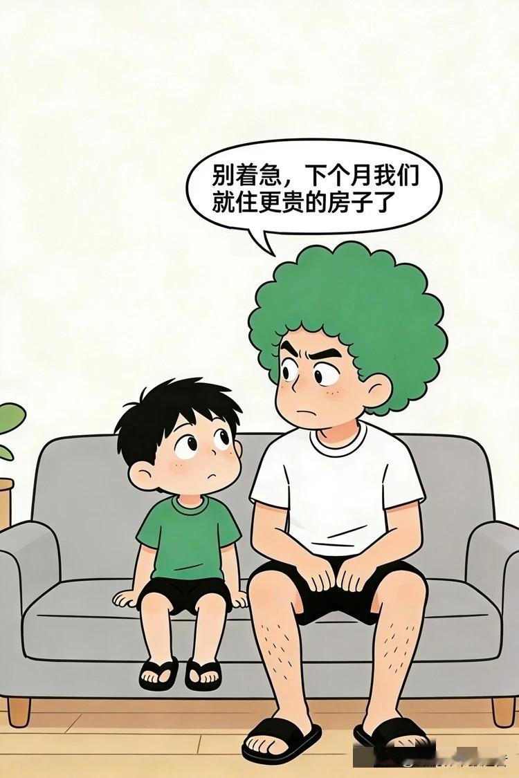快乐漫画:儿子问为啥不能住贵房子?爸爸神秘一笑说快了!