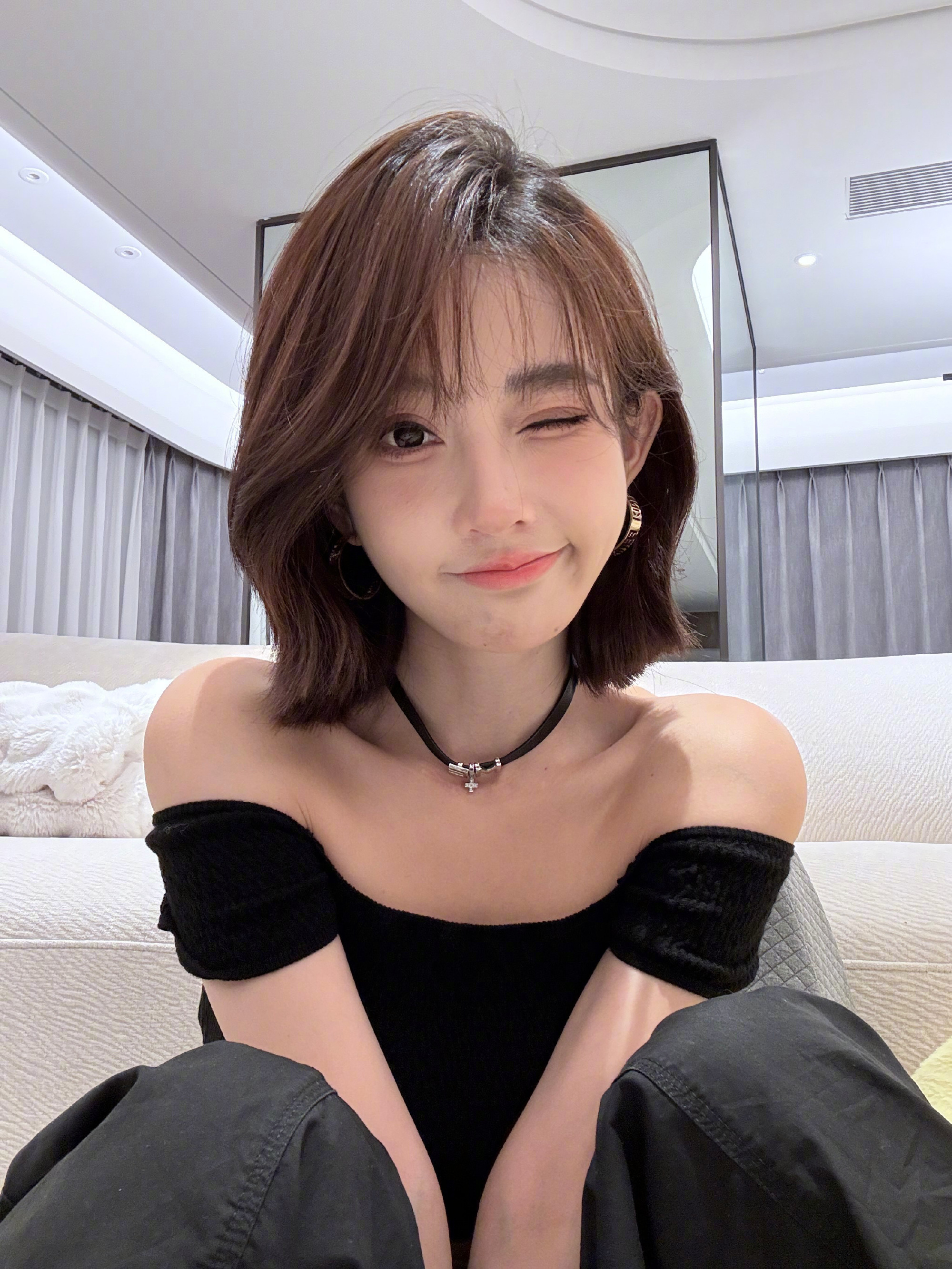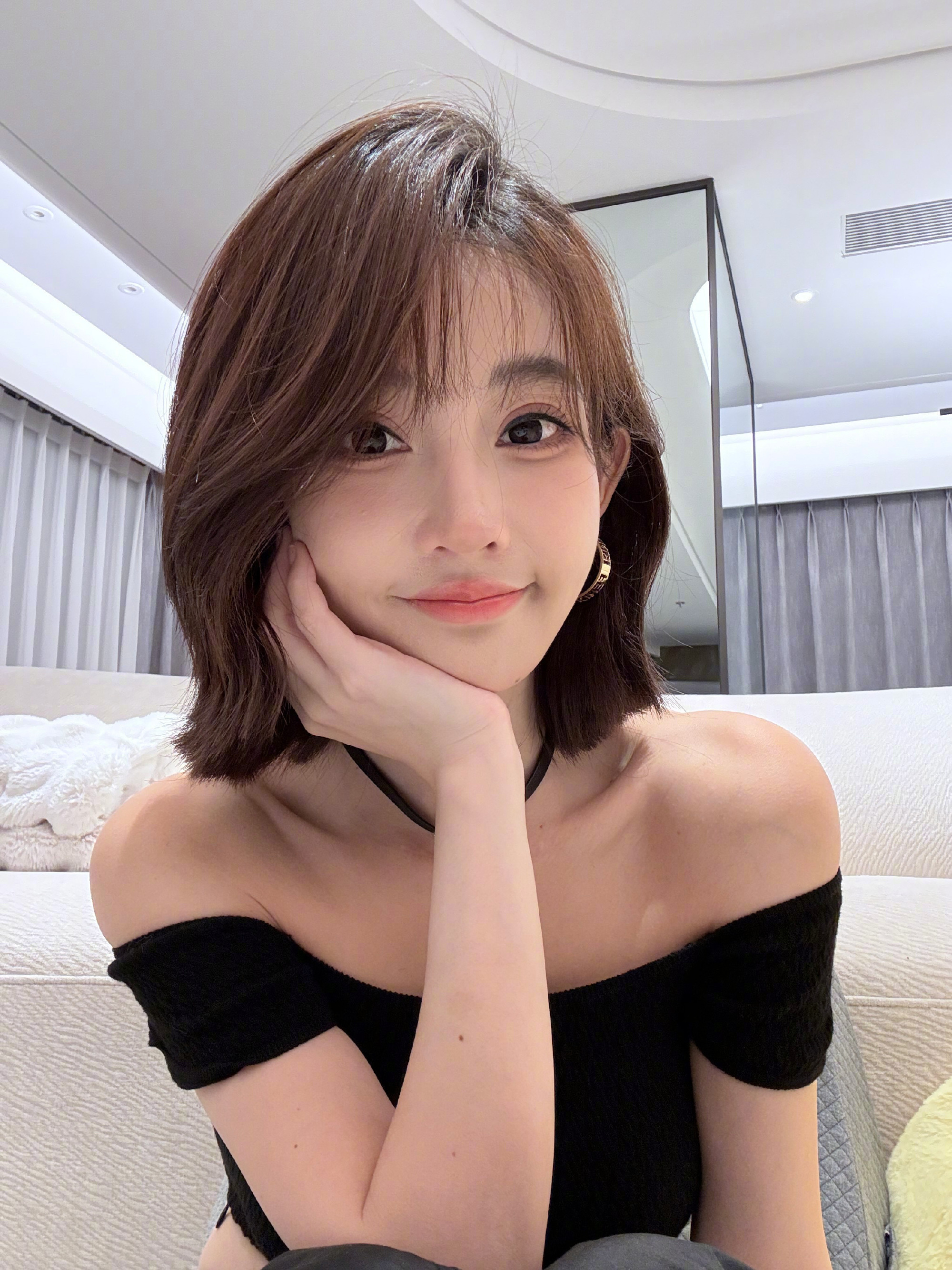 冯提莫,短发头像自拍,酷酷的美美的。冯提莫