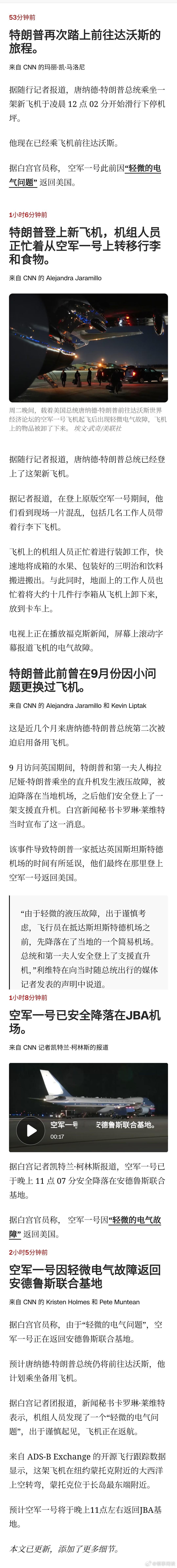 【特朗普前往达沃斯,空军一号因轻微电气故障返回安德鲁斯联合基地】