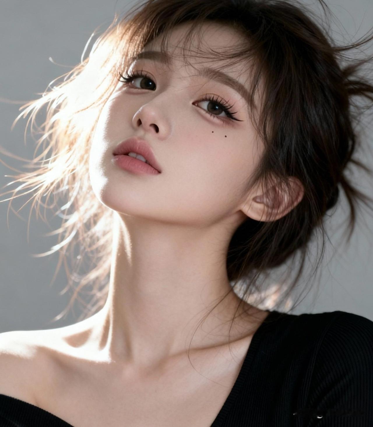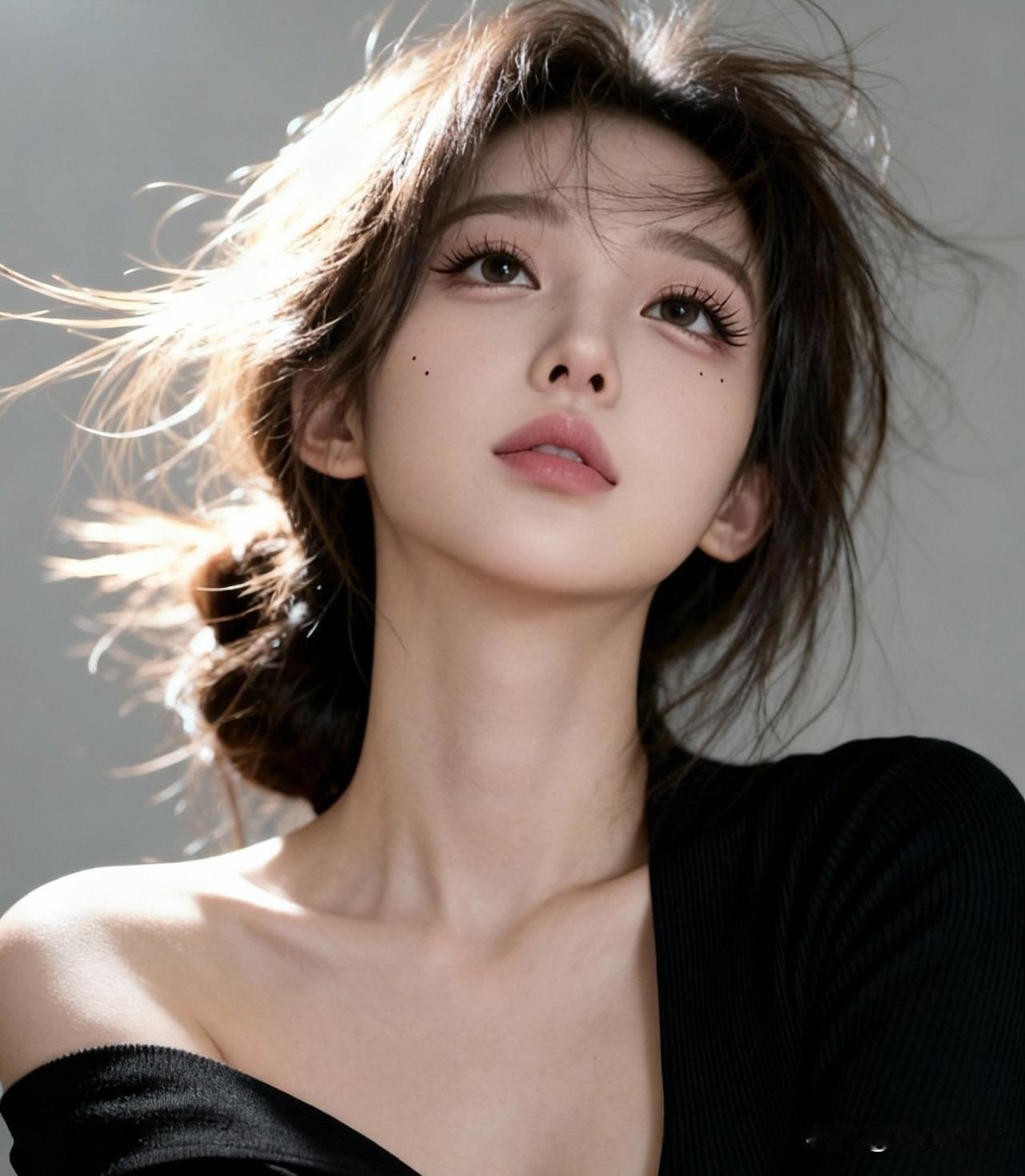 温柔眼神,飘逸发丝,黑纱裙摆,唯美意境