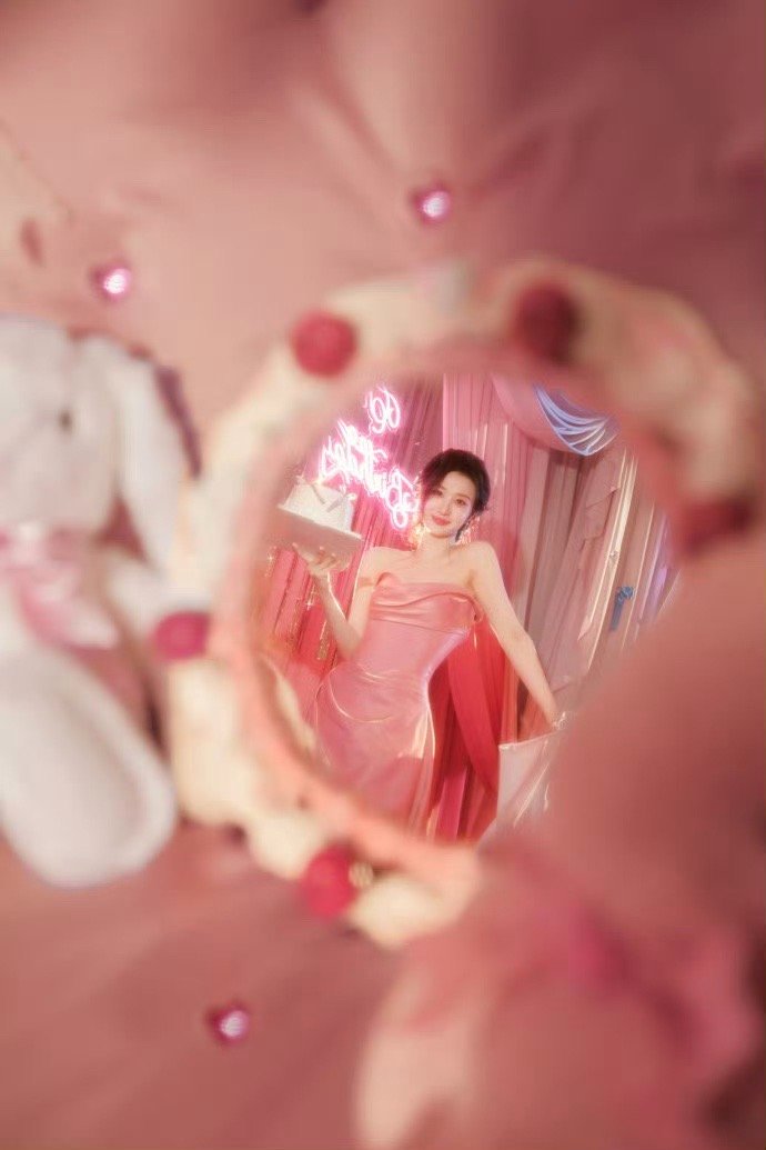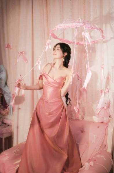 被王楚然这组造型美晕了!粉色裙子自带仙气,满头精致的蝴蝶结更是甜到不行。她手里举着小伞,笑得特别灿烂,连头发丝都在发光,整个人娇俏又充满灵气,像一场精心编织的粉色梦境