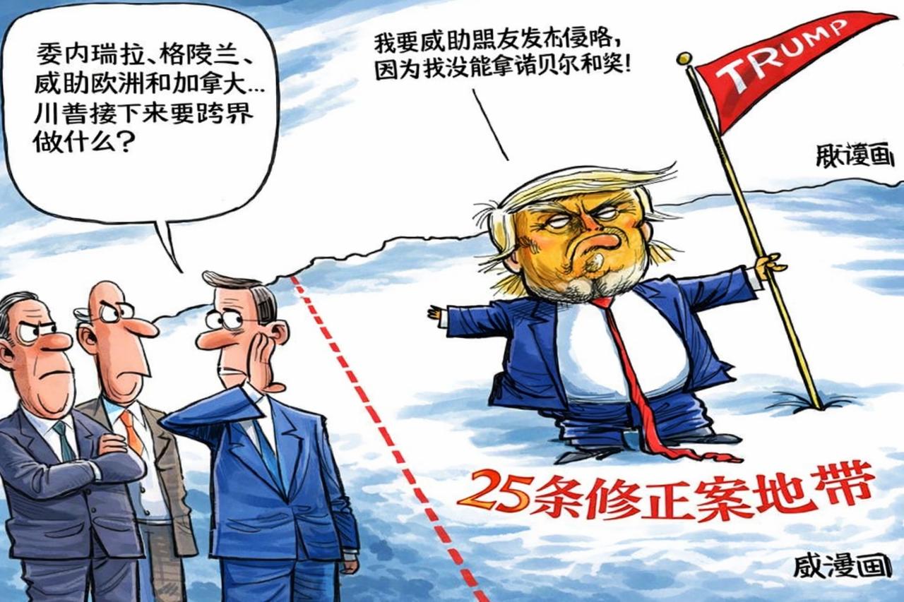 一组美国政治漫画,特朗普还是太会整活了,感觉美国的漫画家们都是靠着特朗普才有无穷的灵感。 这组漫画以特朗普威胁占领格陵兰岛为主,我等坐看他如何拿下格陵兰岛,最好他们自己打出狗脑子来。