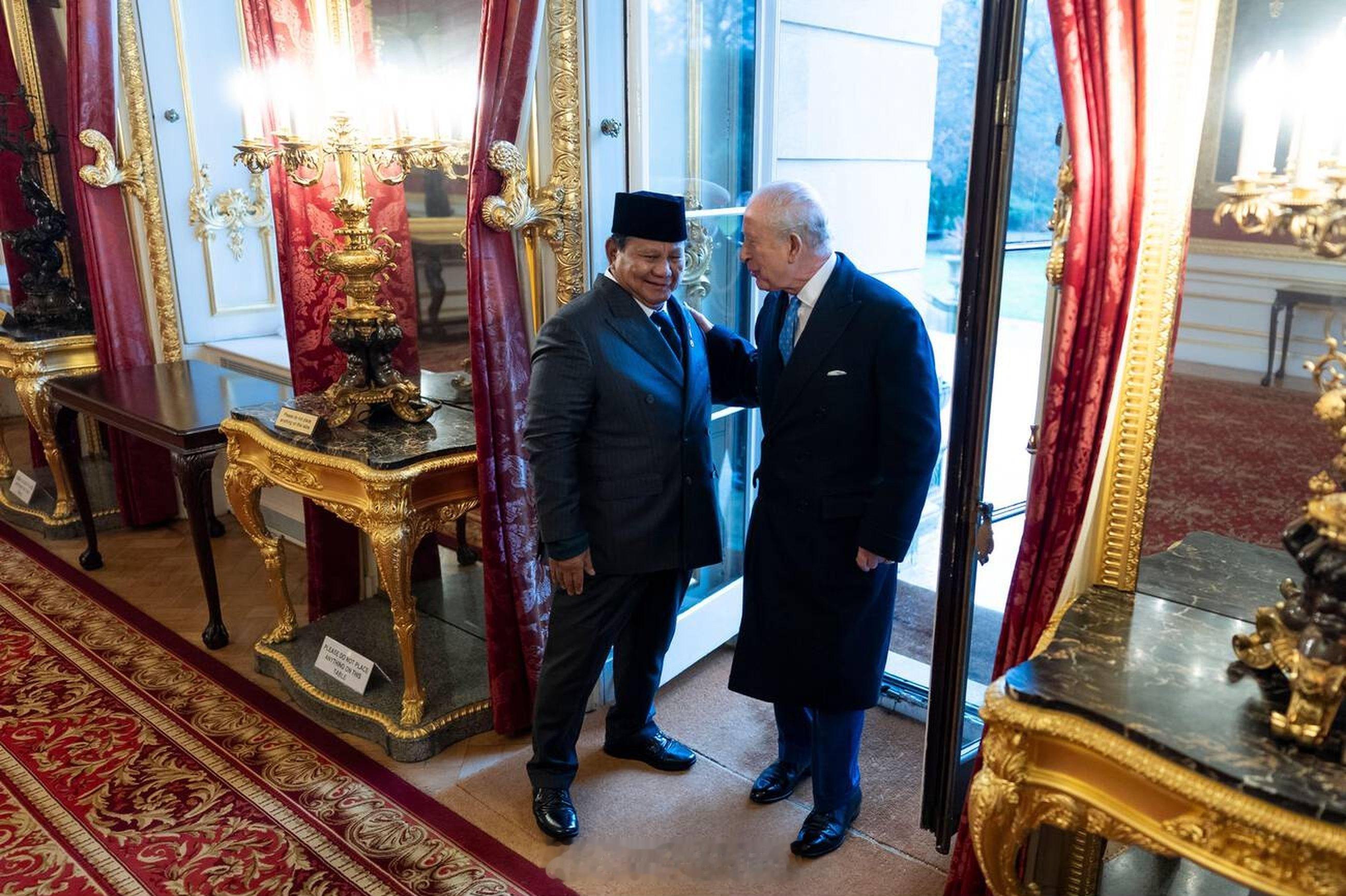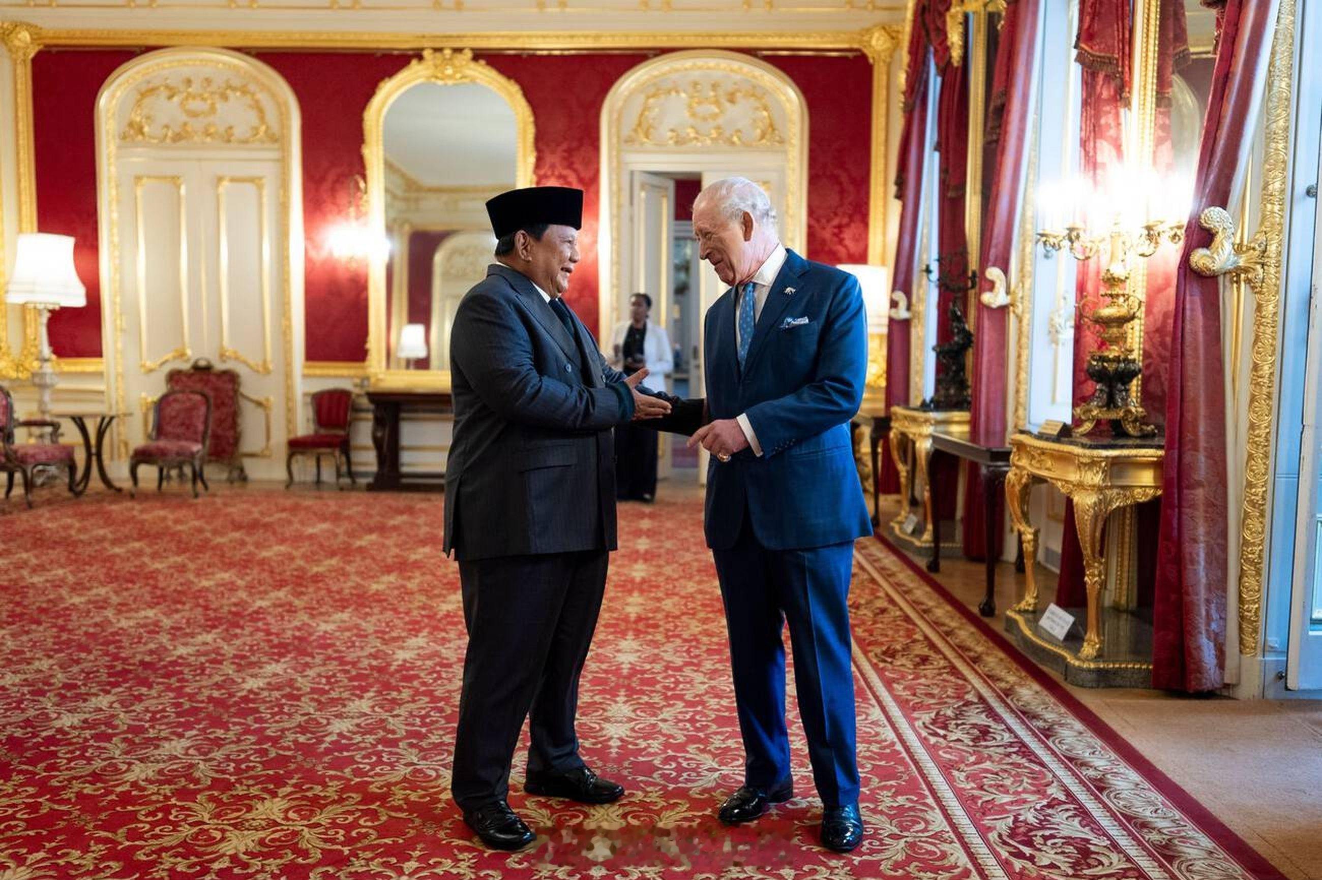 英国王室 今天查尔斯三世和印度尼西亚总统Prabowo Subianto在伦敦兰开斯特宫参加招待会,以纪念英国和印度尼西亚通过印尼主导的苏门答腊象(一种濒临灭绝的亚洲象,其栖息地遭到破坏)保护倡议建立一种物种投资保护工作组,为印尼国家公园提供国际支持🐘🇮🇩