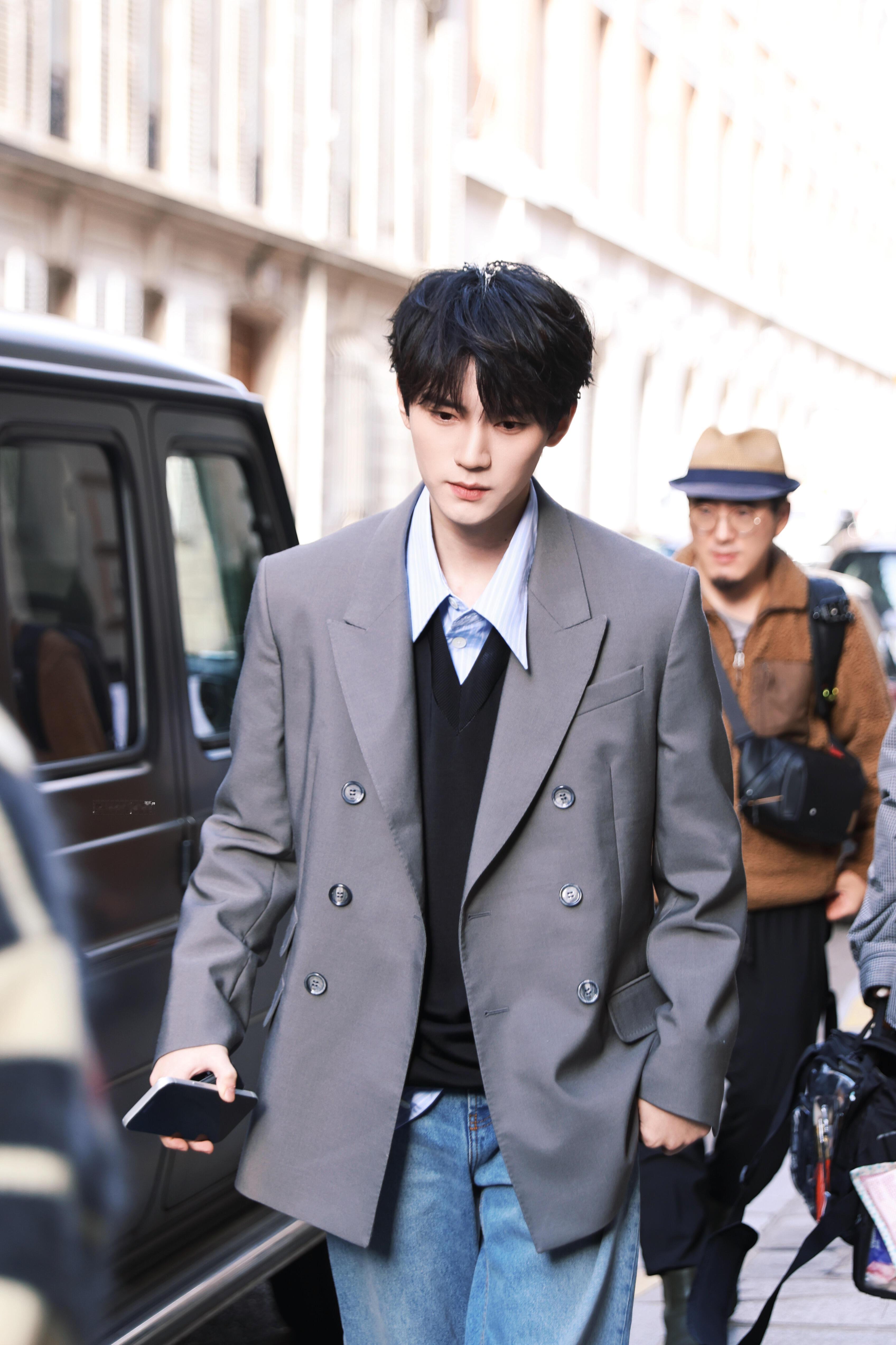 周翊然巴黎时装周造型,清冷的贵公子