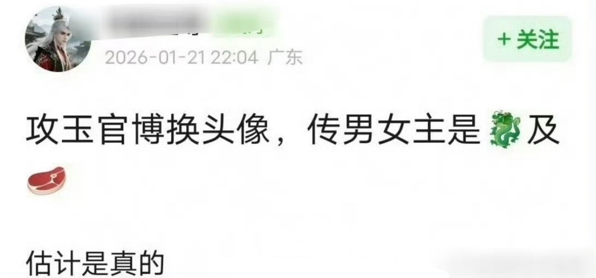 🍉攻玉有动作了,官博头像换了,现在在传赵露思和宋威龙,大ip强阵容。赵露思许我之后彻底逆风翻盘,宋威龙今年也终于是好起来了。他俩演还是挺有看点的。