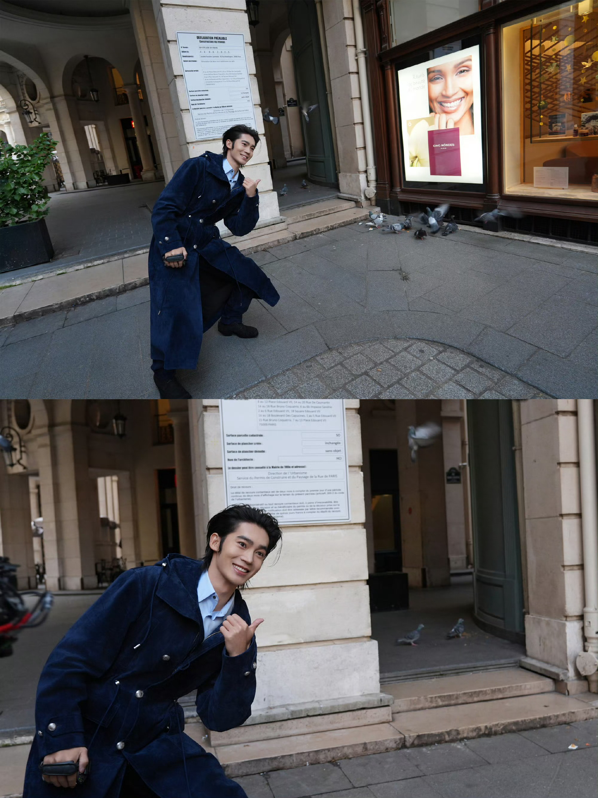 于适 in Dior 📷 今晚 DIOR大秀 物料继续释出,穿着未发布的新款出镜,穿行于巴黎街巷,和造型片不同风格,随拍更加生动鲜活,又一季 巴黎男装周 之旅圆满结束。 男装周