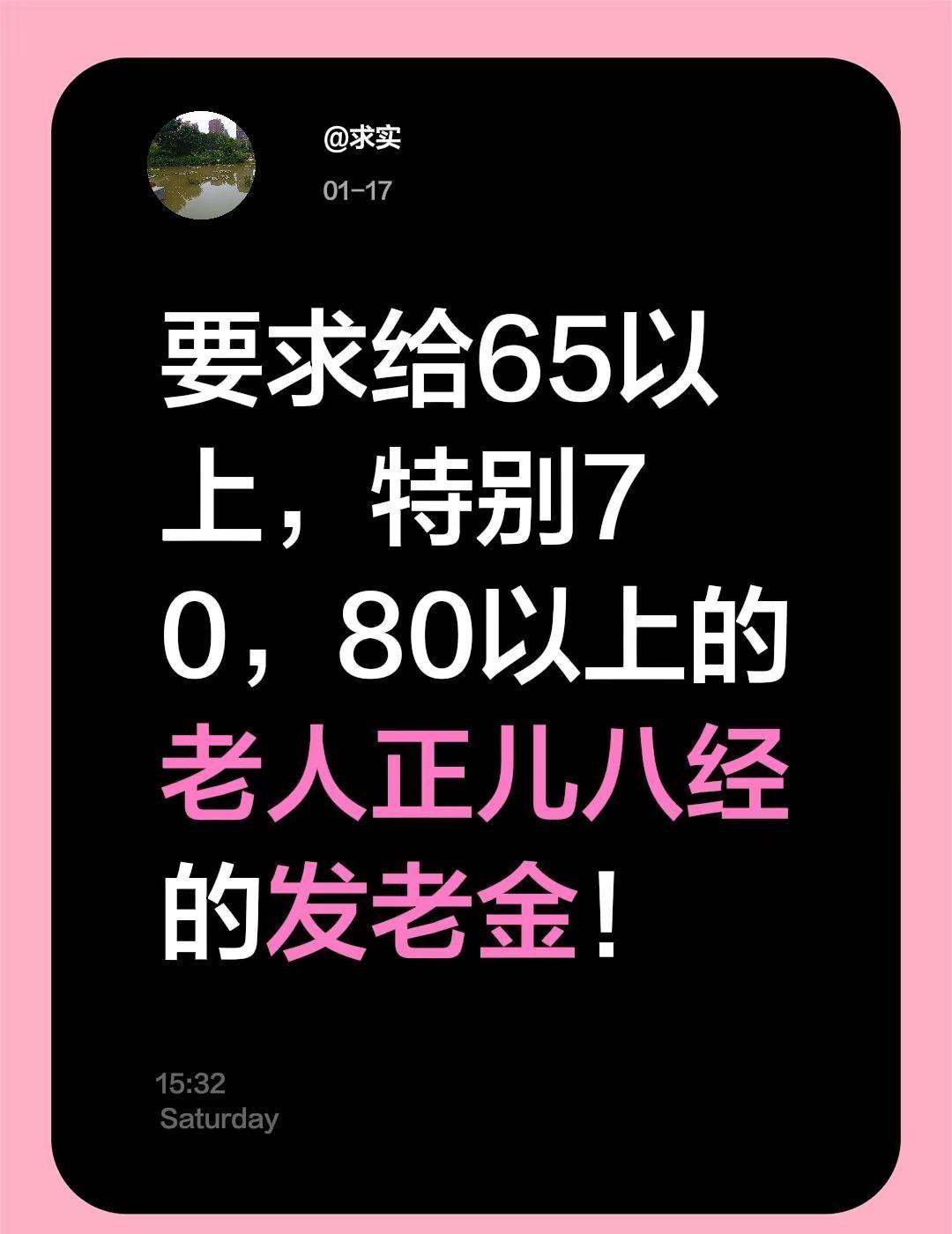 我评论了@平凡 的作品:要求给65以上,特别70,80以上的老人正儿八经的发老金!