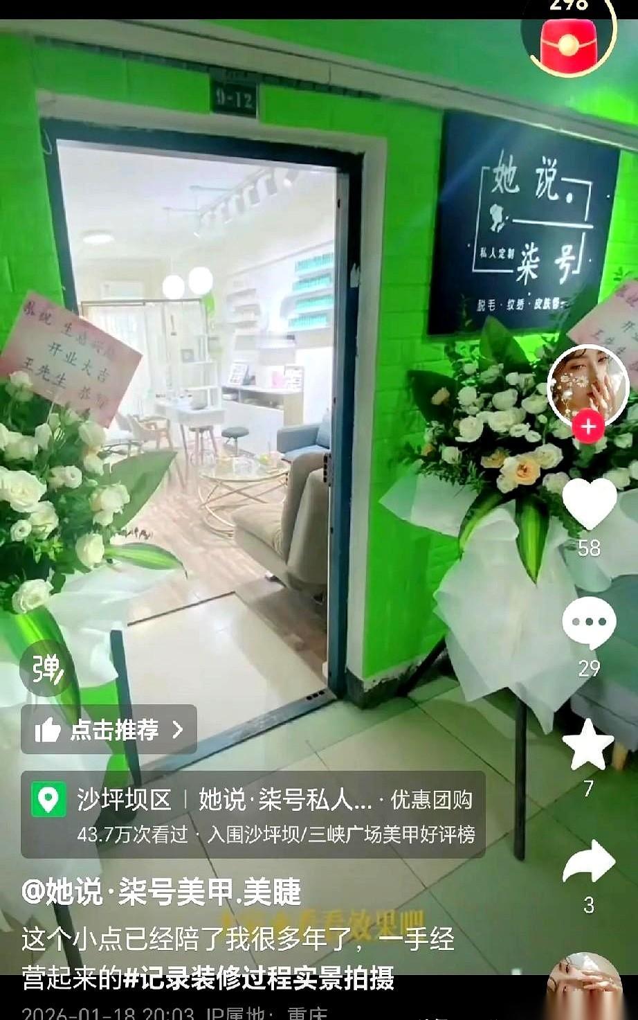 重庆沙坪坝有家美甲店,老板自己都说,这大概是全网最坎坷的铺子。 2022年,她刚跟房东签完合同,崭新的桌椅搬进去,仿佛都能闻到梦想的味道。 结果,第二天。 就第二天。 一张A4纸通知贴在了大楼门口,整个商场拉上卷帘门,世界瞬间安静,这一关就是整整三个月。 刚迈开的第一步,直接踩进了冰窟窿。 店里空荡荡,只有新桌椅的影子在地上拉得老长。老板的手机屏幕上,只有催缴房租的红点,在一遍一遍地闪。 很多人都以为,这家店,连开业典礼都没等到,就这么没了。 结果,今年1月18号,老板回来了。 她在网上发了条视频,人就在沙坪坝,身后是那家店。灯亮着。 不仅重新开张,还换了个新名字。 以前叫“呆呆”,现在,叫“她说”。 这已经不是在跟谁较劲了。 这就是一个人,用行动在告诉所有人:我的故事,现在才刚刚开始。