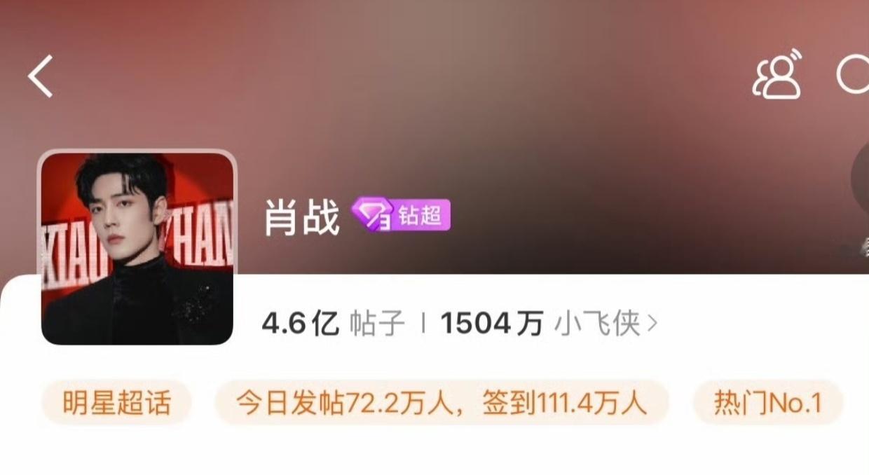肖战超话签到人数破百万,第一👍超话发帖人数72万,第一👍微博之夜热力值破4亿,断层第一👍啥也不说了,xz就是牛 肖战超话签到人数100万肖战小城良方演恐雪症