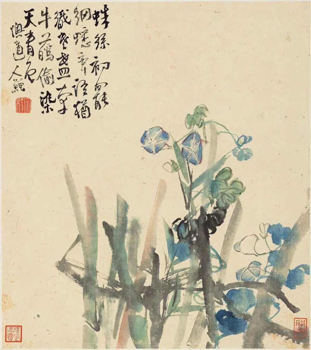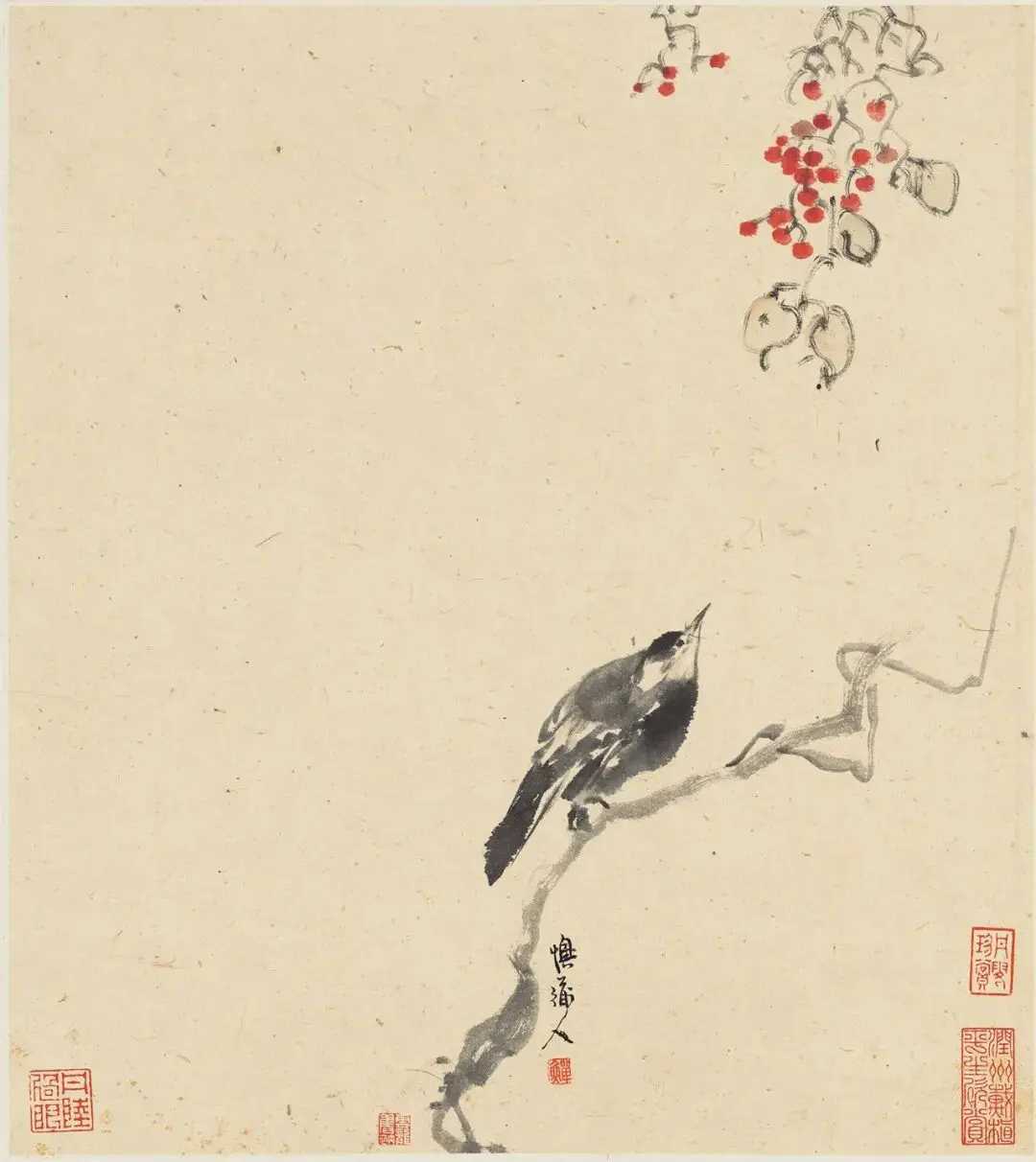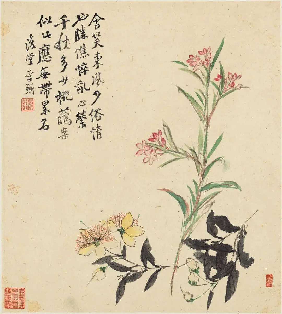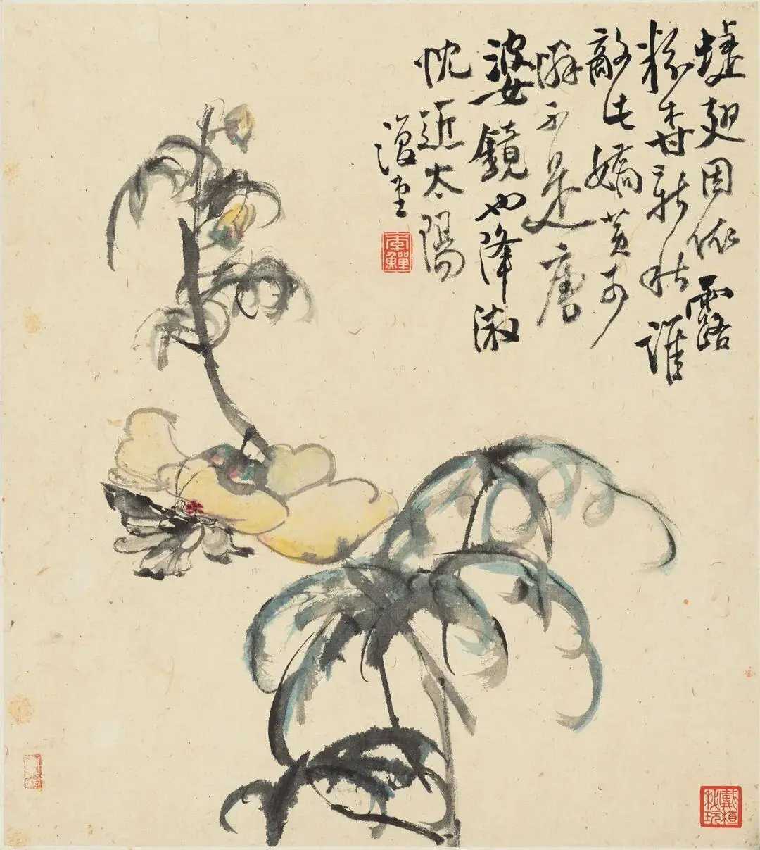 清 李鱓 花鸟草虫册。李鱓(1686-约1762)字宗扬,号复堂,江苏兴化人。乾隆年间任山东滕县知县,后因得罪上司而被免职,回到家乡,往来扬州卖画。李鱓的作品以花鸟画为主,画风先后数变,早年随蒋廷锡、高其佩学画,画风工细严谨,颇有法度。后又受徐渭、八大、石涛等人影响,中年以后风格大变,转以粗笔写意,大胆泼辣,墨法酣畅淋漓,富有气势,挥洒自如的同时不失规矩方圆,用色的深浅浓淡丝毫不乱,达到了其艺术生涯的巅峰。晚年因需要以画为业养家,画风又变,构图繁复稳健,用笔老硬拙涩,有一些作品往往呈现出散漫颓唐的气息。这就是中国风遇见艺术
