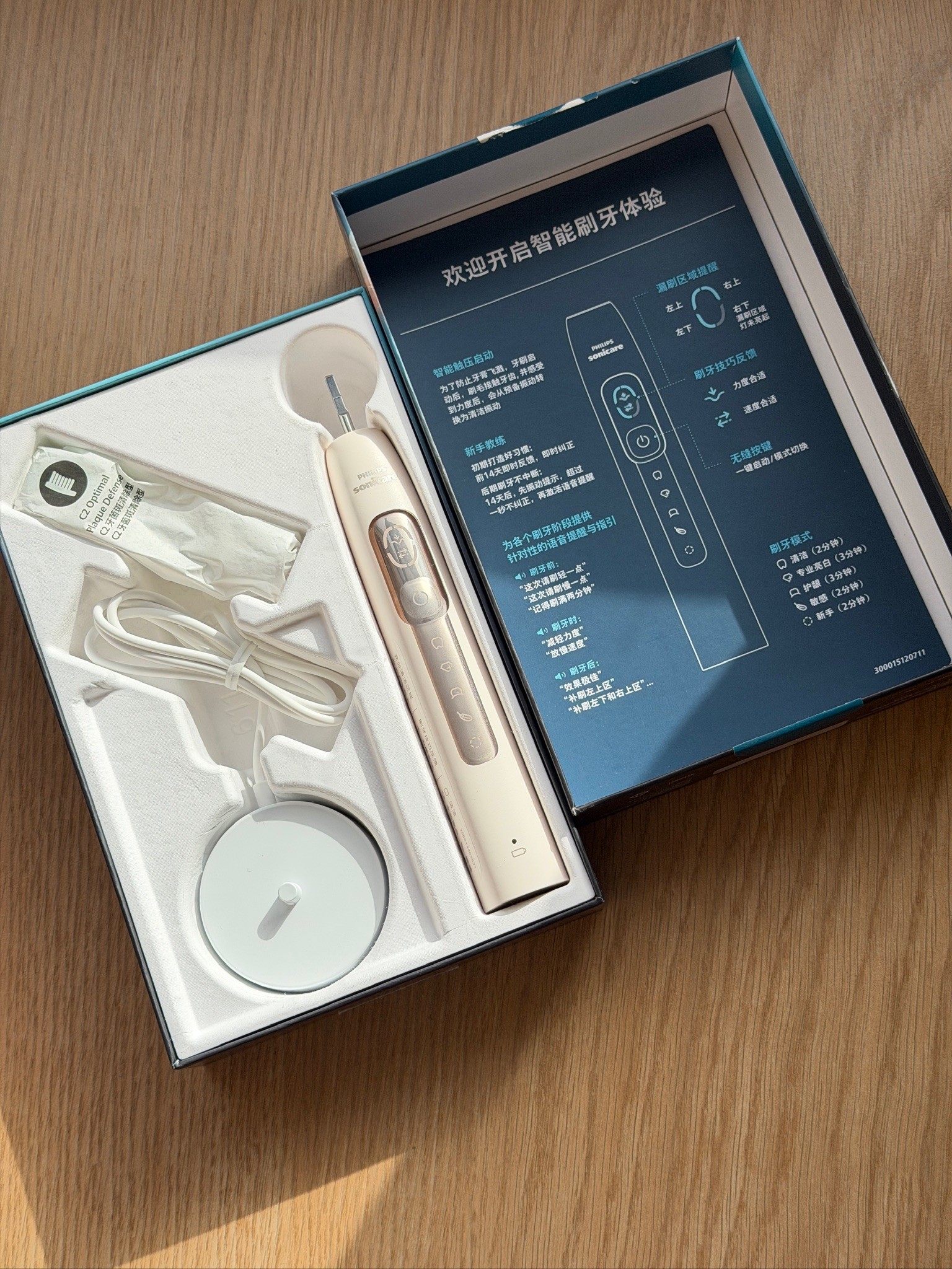 马上就快过年了,姐妹们都选好要给家人老闺蜜送的礼物了吗?本来还在犹豫的我,在收到飞利浦Sonicare智能导航刷的时候一下就有了答案!💡新年伊始洗漱台的颜值C位非它莫属!问就是谁能抗拒霞光粉的温柔暴击?💓瞬间让重复的日常洗漱多了份精致仪式感,刚睡醒迷迷糊糊整个人心情都变亮堂了✨当作礼物送给家人朋友体面感也直接拉满~用起来更是懒人福音,360°智能语音超航带着刷头把牙缝、牙龈沟都照顾到,以前刷牙总是想偷懒糊弄,现在不仅有2分钟提示,刷牙中也会有震动力度和刷牙方向的提示🔔不用费劲琢磨刷牙手法,也不怕再刷伤牙龈,像把私人牙医请回了家,真的是闭着眼也能刷好刷对刷干净,再也不给残渣过夜的机会~还有飞利浦专业声波洁牙科技也很值得夸👍用声波把微泡水流冲进牙缝,短短2分钟清洁面积多加40%,每一次刷牙都是一次细腻的微泡洗牙~刷毛震摆一体仿佛全自动的巴氏刷牙,牙菌斑清洁效果是手动牙刷的5倍,咖啡脑袋再也不用担心会变大黄牙了,真的是把口腔护理做到极致贴心~而且充一次电能用好久,完全不用惦记充电这事儿🔋不要太适合我这种有电量焦虑的户外野人了嘿嘿!把对家人朋友的健康关怀融入朝夕,送家人一个每天都能用的美丽护牙神器真的很显心意,让每一次刷牙都成为生活里的享受时刻,这份高级又实用的心意谁能不爱(得意脸😎飞利浦智能导航刷全球首发肖战飞利浦智能导航刷