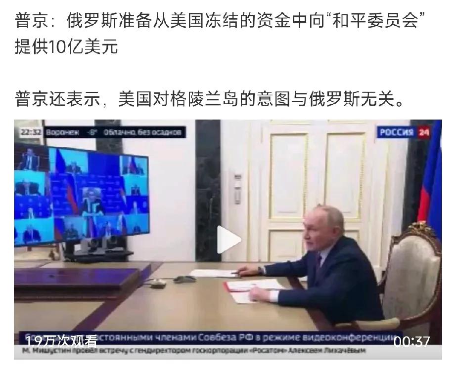 普京说了,先给和平委员会10亿美元! 1月21日,普京就美国近期事件表态三点: -美国向丹麦收购格陵兰岛与俄罗斯无关。 (由此表明俄罗斯不干涉美国) -俄罗斯是否加入加沙和平委员会有待俄方进行协商。 (由此为俄罗斯留有足够外交空间) -俄罗斯将先行为加沙和平委员会提供10亿美元会费,这笔费用将从被美方冻结的俄资产中支取。 (由此为解冻俄资产提供契机) 总得来说,俄罗斯这把玩得溜!