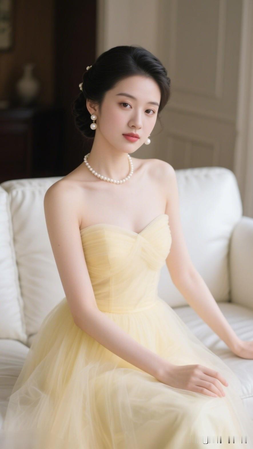 优雅复古风,珍珠项链与黄色礼服的完美搭配,尽显高贵气质。女人最耐看的长相是什么样的