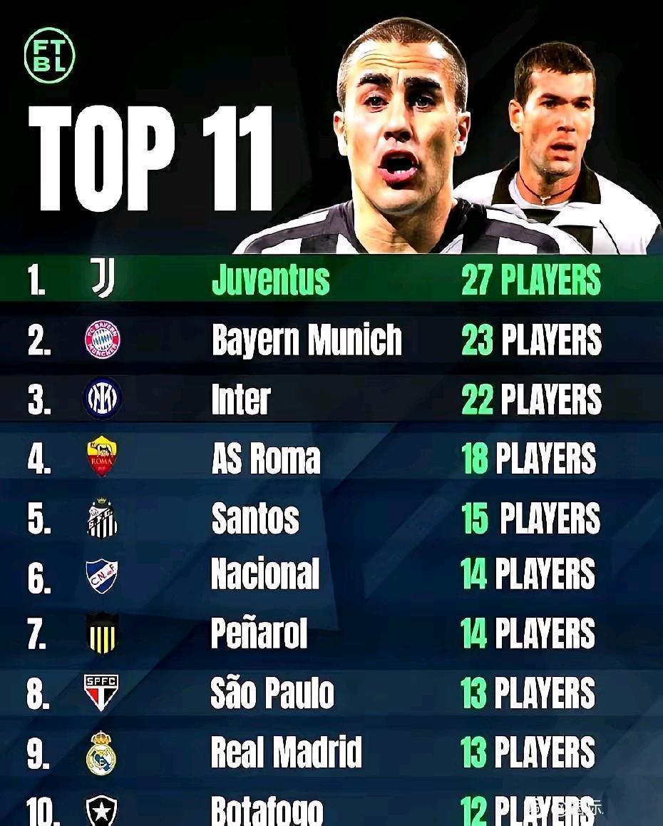 世界杯冠军国脚贡献榜,意甲还是最多。 尤文图斯有27名国脚拿过世界杯。 拜仁有23名国脚拿世界杯。 国际米兰22人,罗马18人。 主要以前意甲很强,意大利四次冠军呢。 巴西冠军多,但巴西联赛一般般。 西班牙近代才崛起,英格兰不说了。[笑哭]