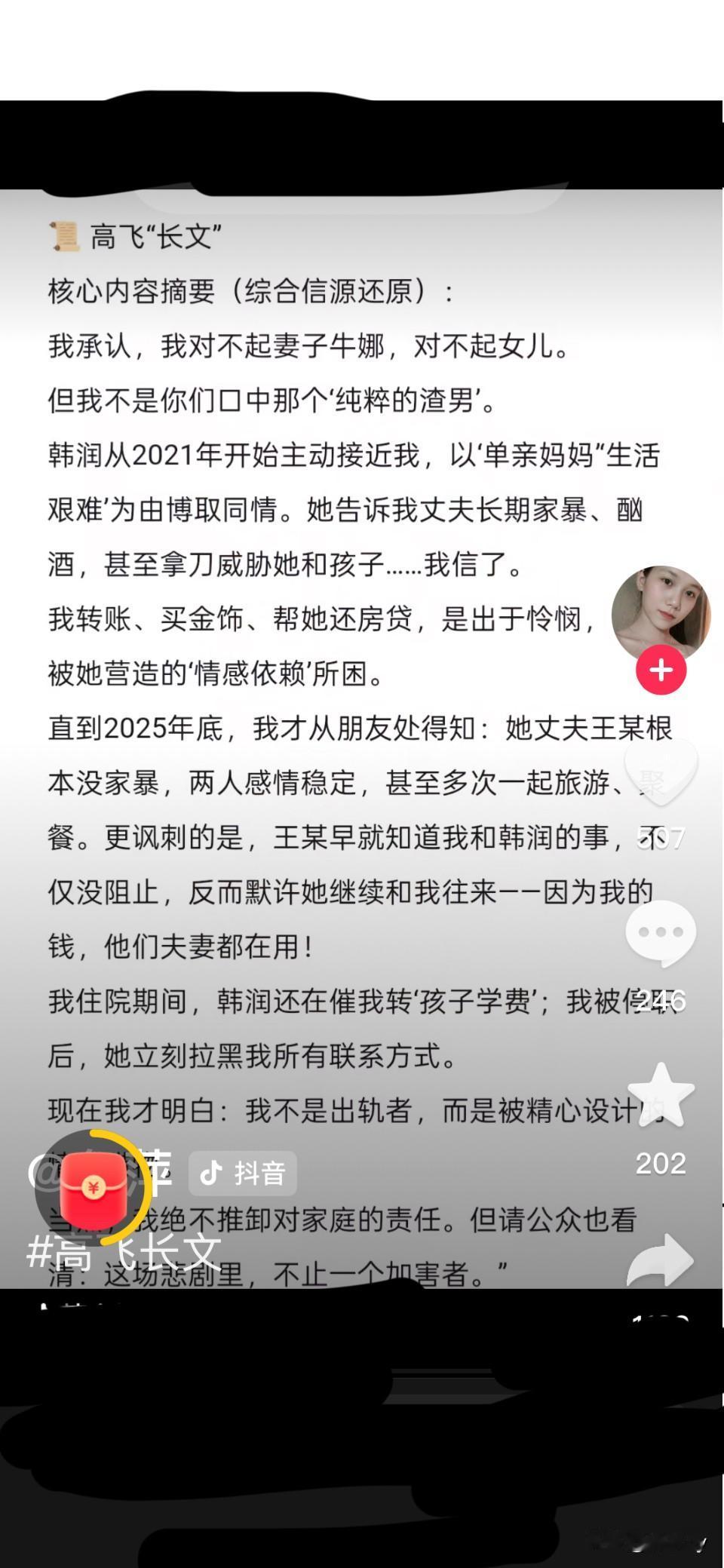 高飞事件出现大反转!高飞竟然与韩润闹翻了!高飞发文指责韩润夫妻联手骗钱! 高飞