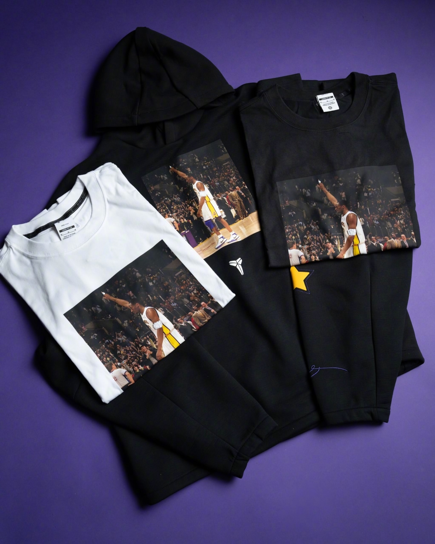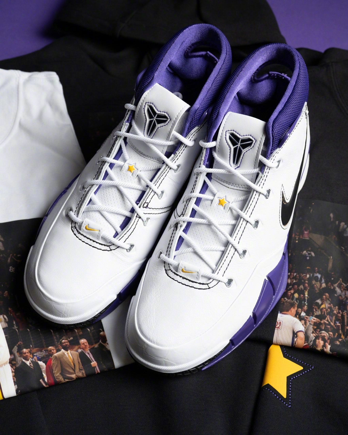 Nike Zoom Kobe 1 '81分' Protro,还有相关的配套服饰。这个T恤小细节是把科比的护腕用的是毛茸茸的材质缝补上去的。
